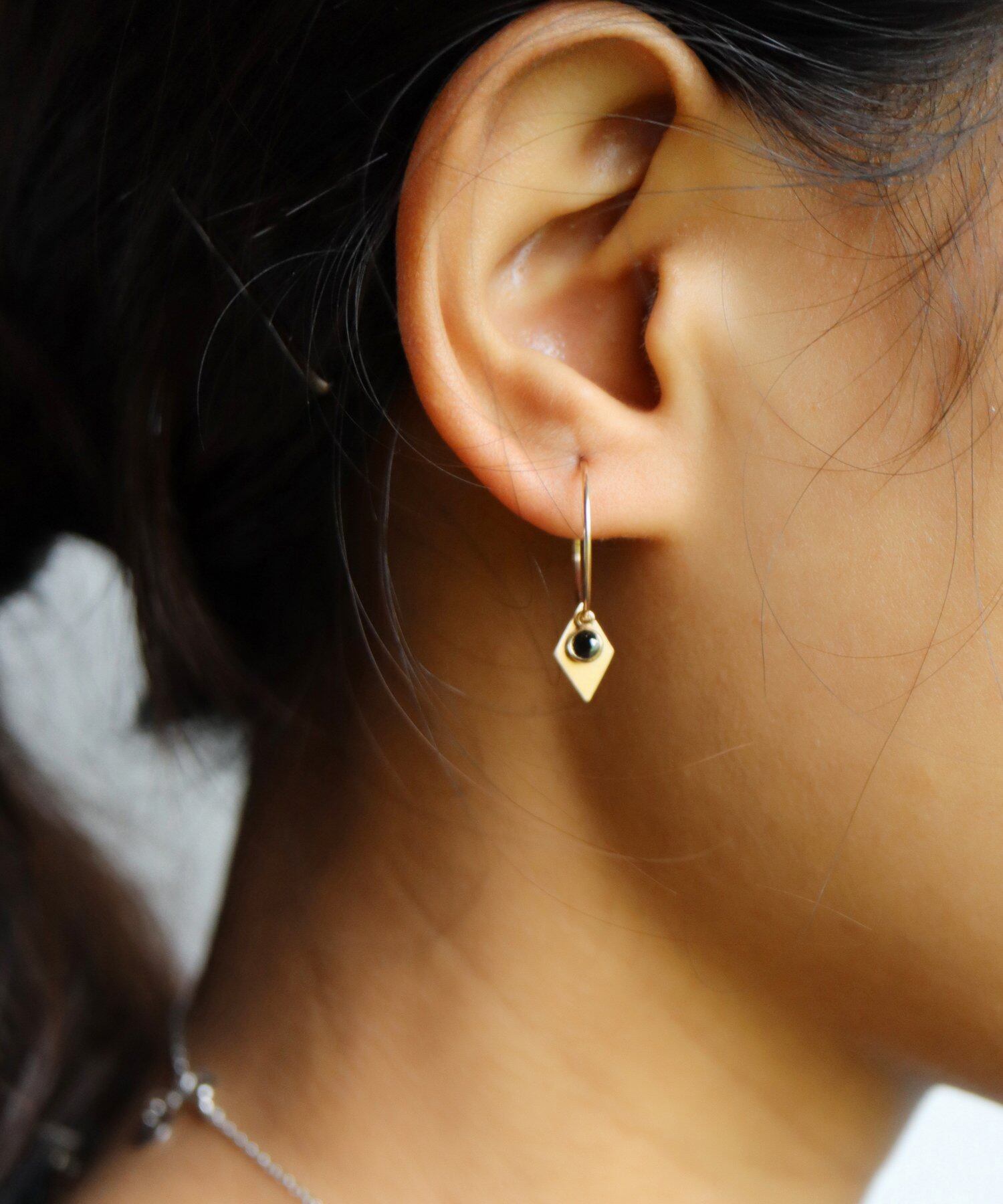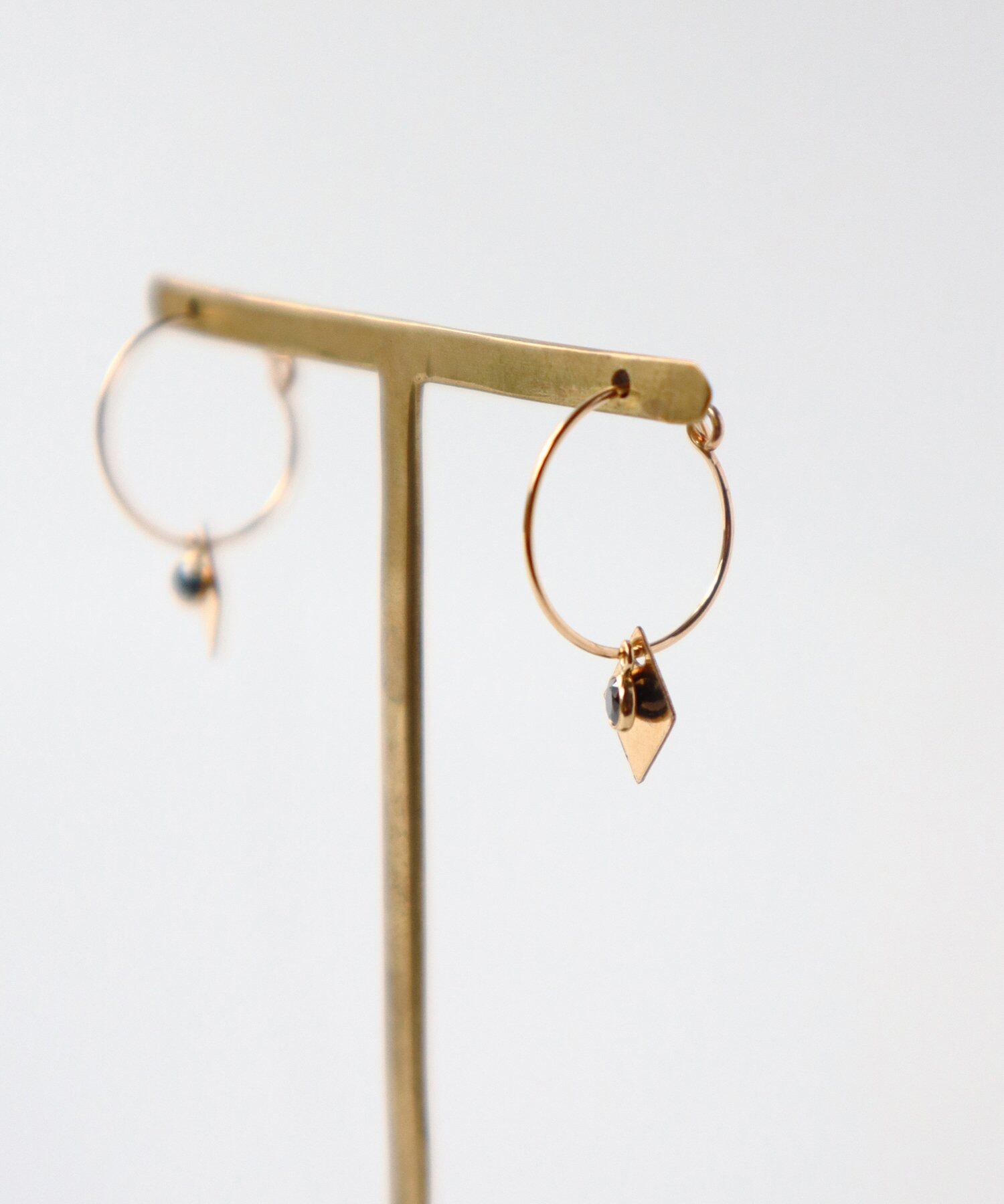 14kgf カラージルコニア×ダイヤプレートフープピアス/019057