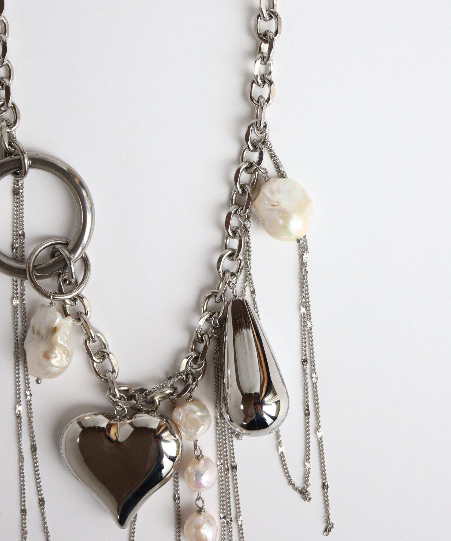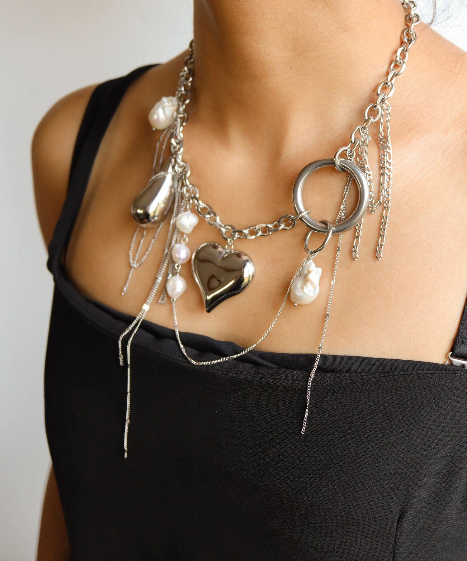 ポップで賑やかなチャームが遊び心を加え、存在感抜群の華やかさでコーディネートの主役に。視線を惹きつける、個性溢れるチャームネックレス。