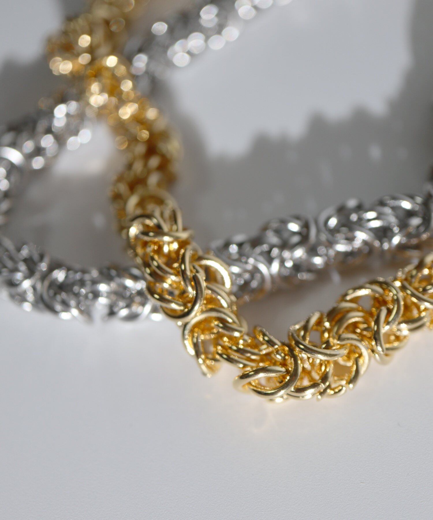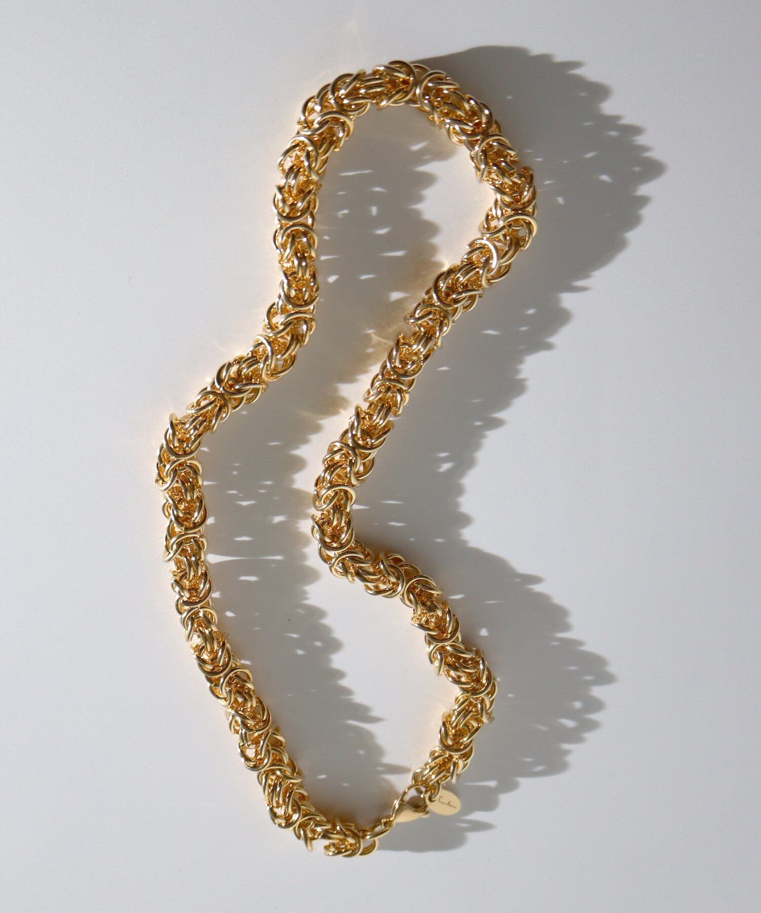 細く密にコマをかみ合わせた華やかなデザインチェーンが美しい光沢を放つアイテム。
