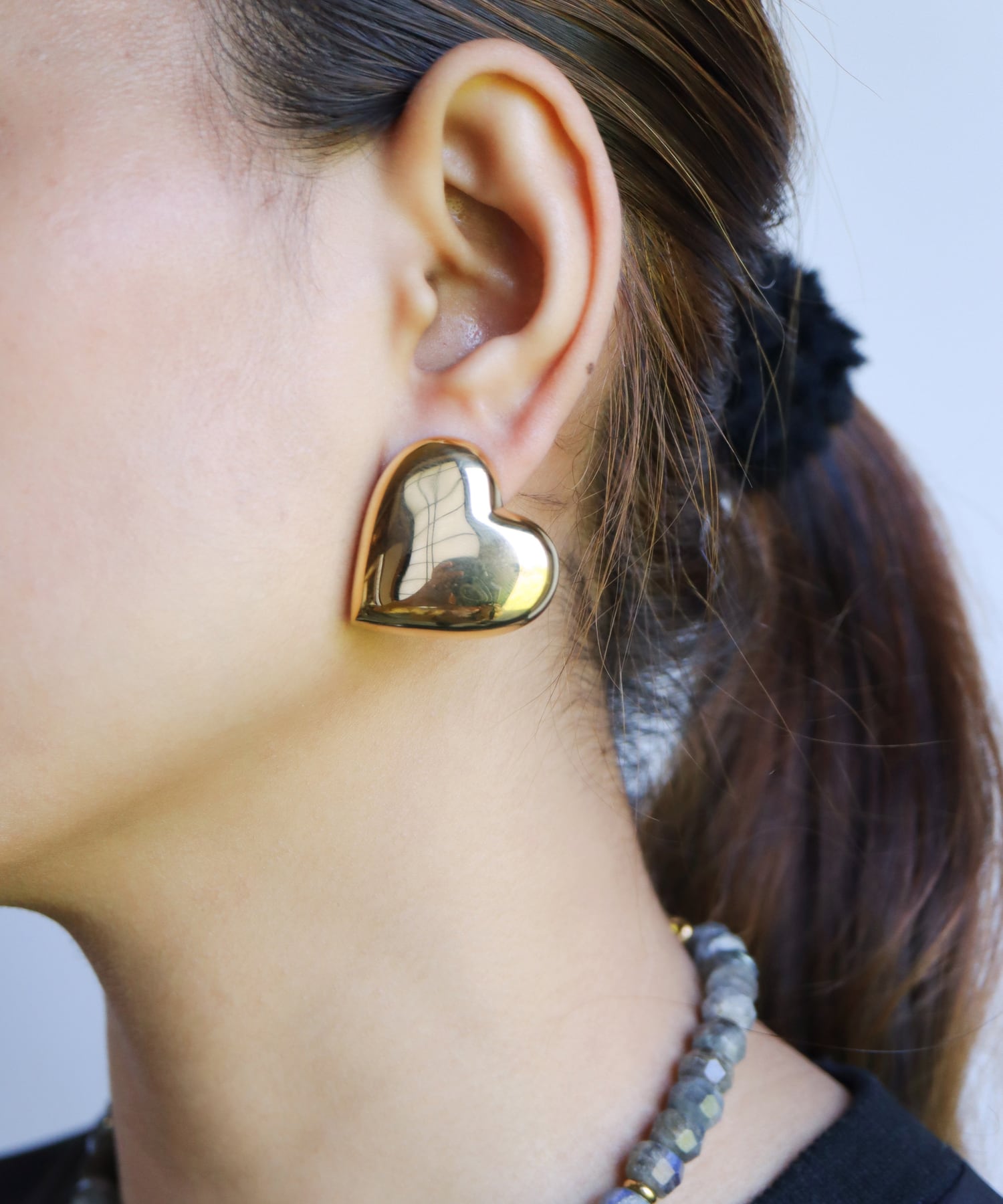 大きなサイズがひときわインパクトあるハートピアス。