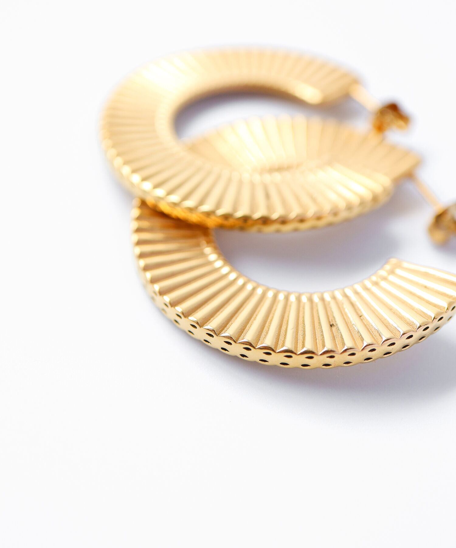 細かいカットが光を美しく反射する、人気のハーフフープピアス。