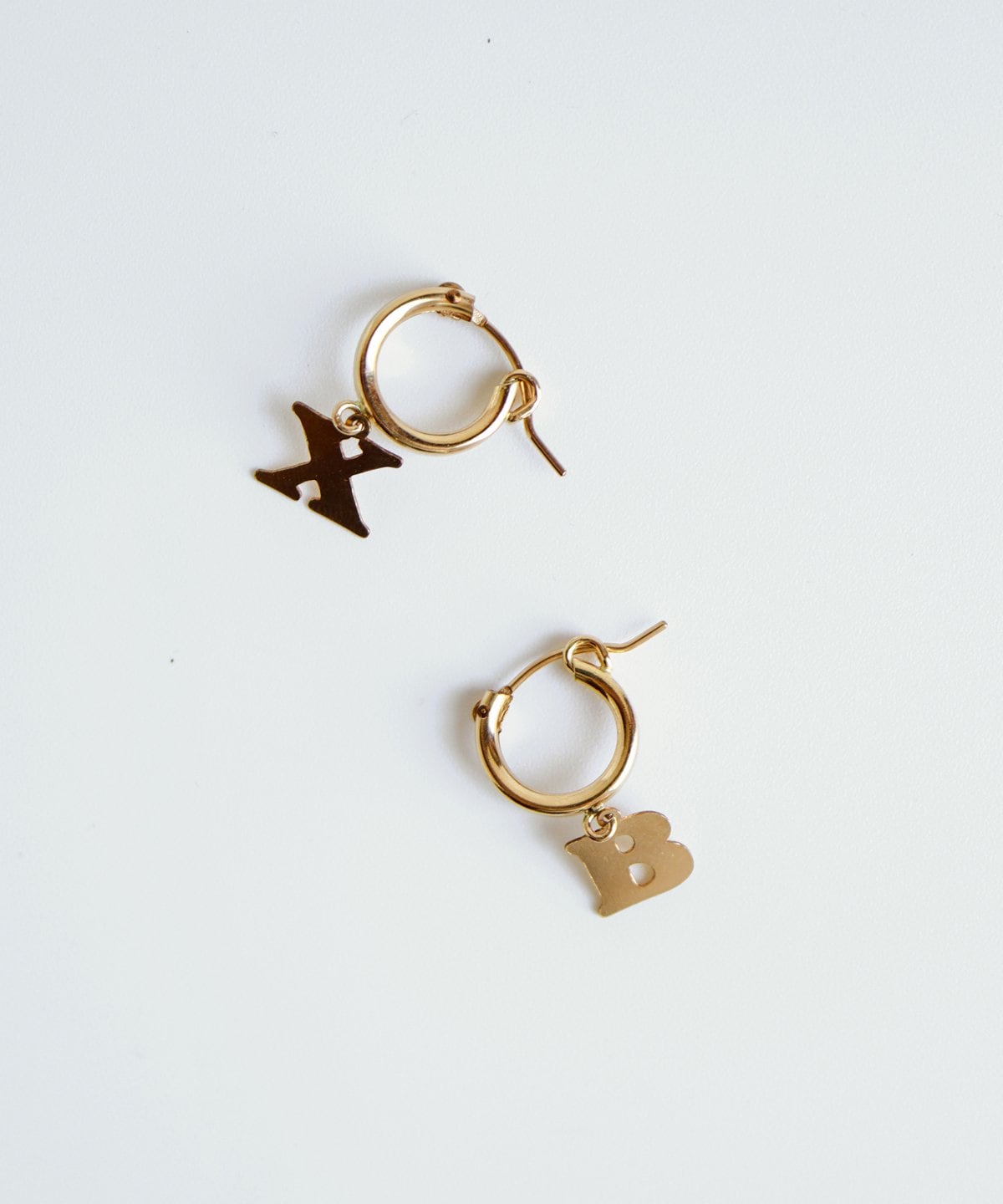 1つのフープにつき1つのイニシャルがセットになります。1ペアをご希望の方は、2つカートに入れてください。
