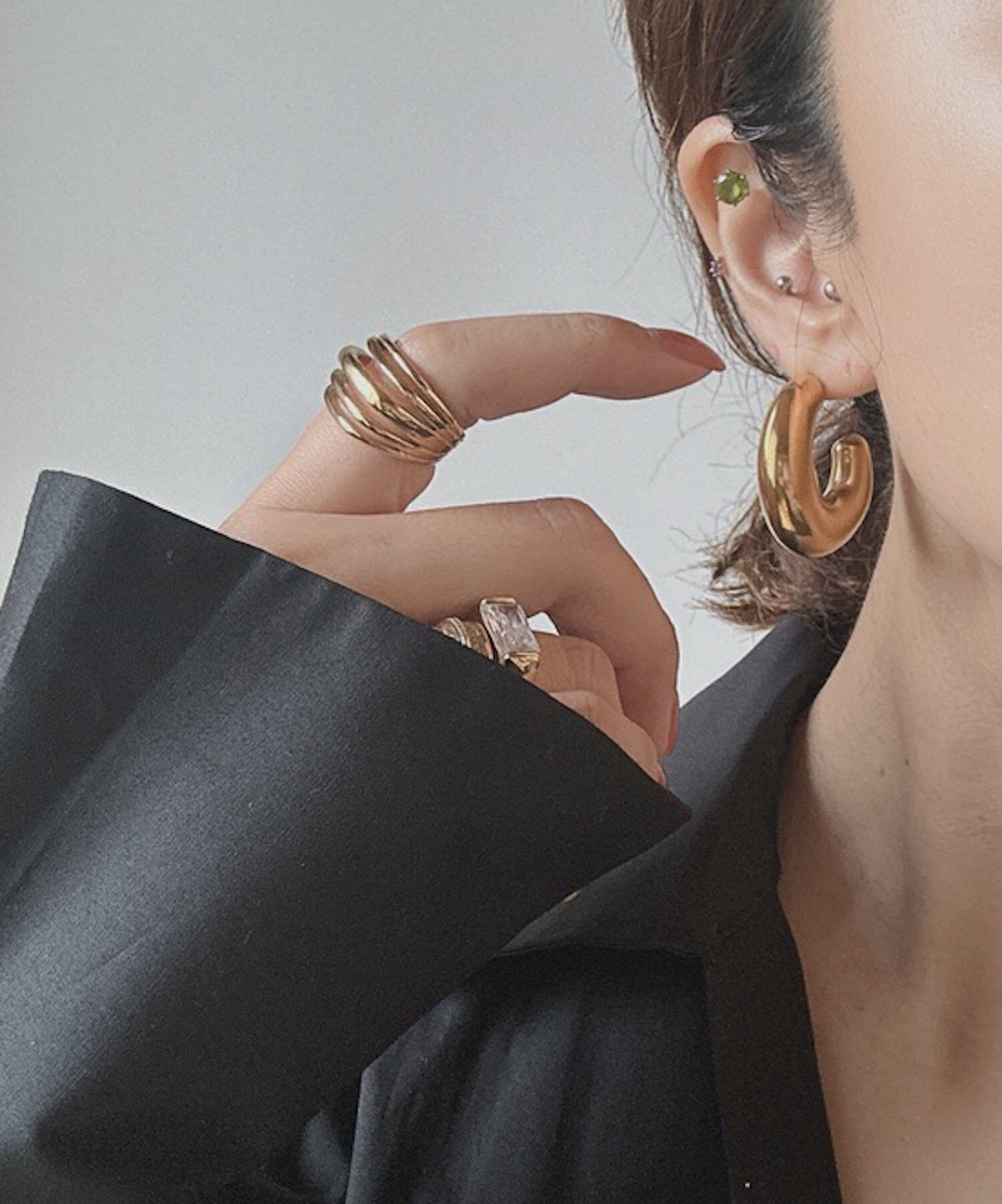 このボリューム感が個性を演出。シンプルリングとのレイヤードもおすすめ。ユニセックスなスタイルにも。