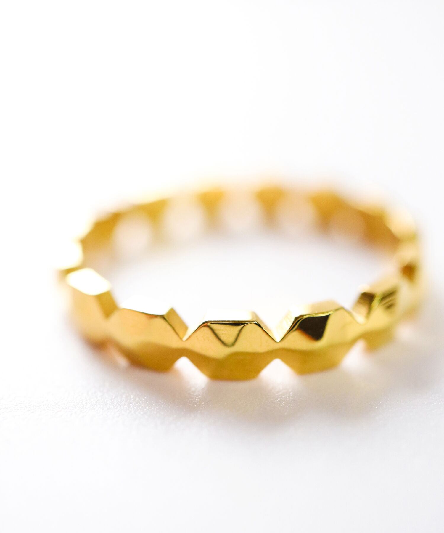 華やかな輝きが6角形のカットに宿る、調和と安定の幸運モチーフのリング。キラキラと輝く華奢なアイテムは、お手持ちのリングとのレイヤードにもおすすめ。