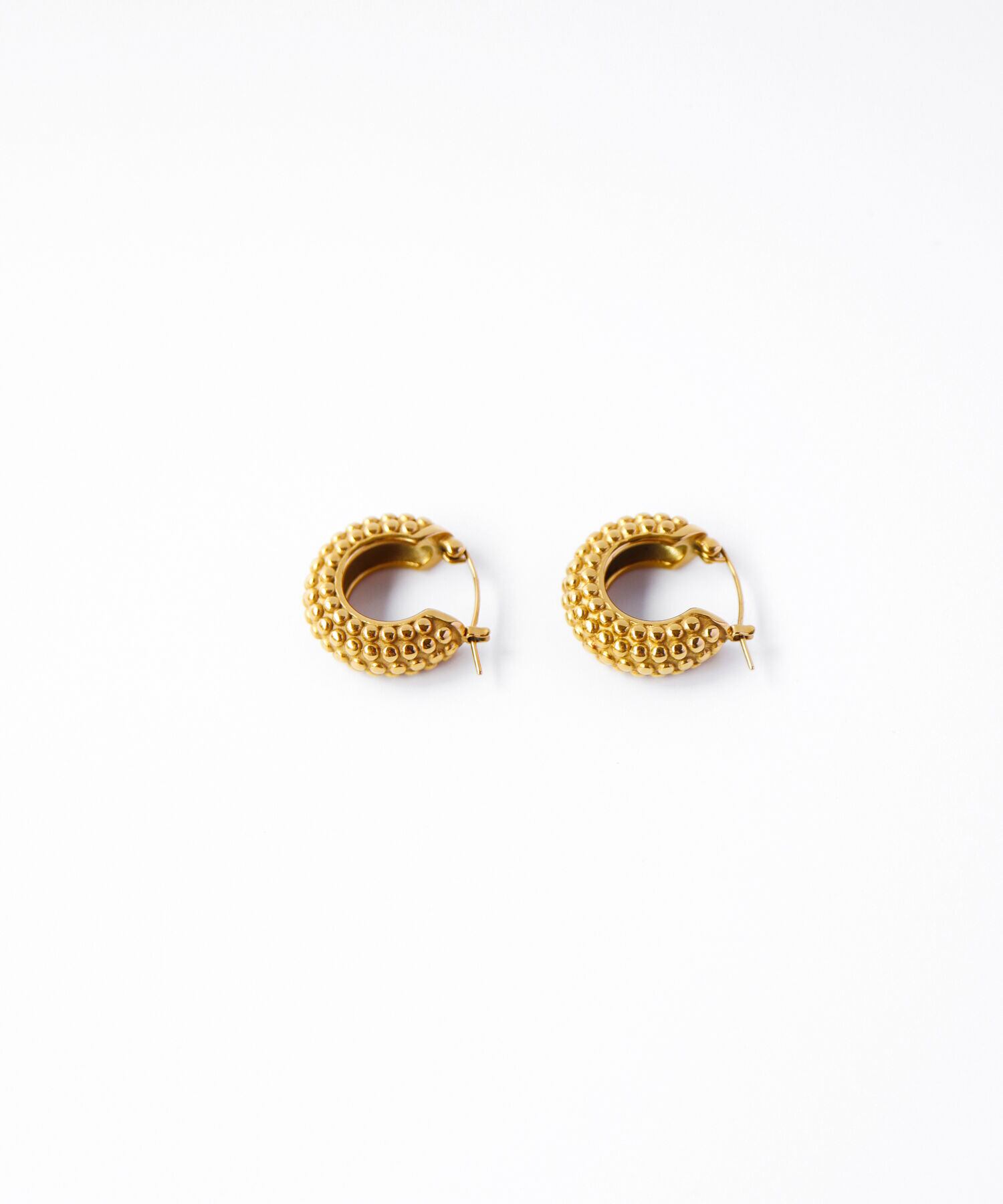 細かいビーズカットの表面がなんともクラシックな印象のピアス。