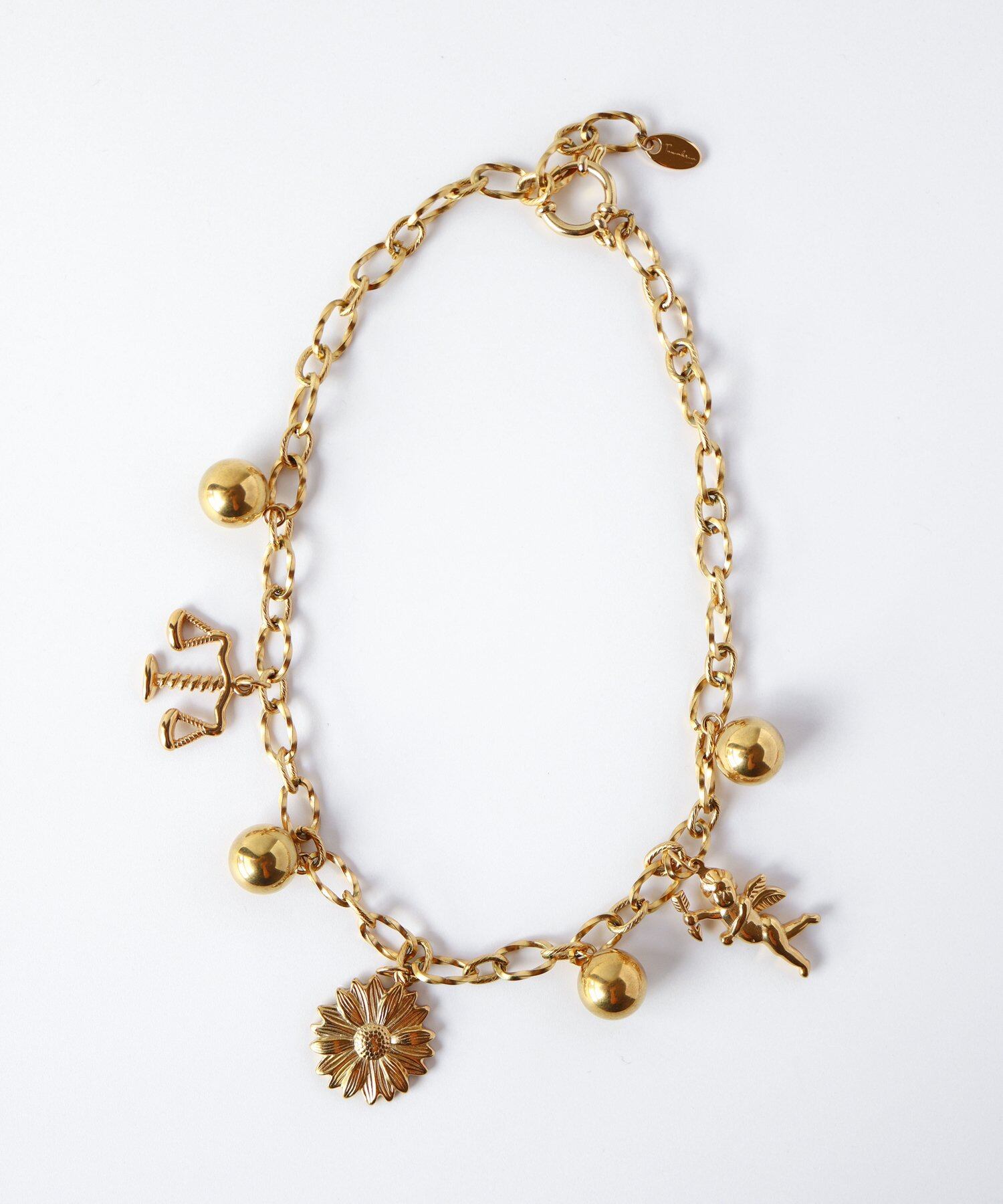 ゴージャスなチャームをふんだんにセットしたネックレス。
