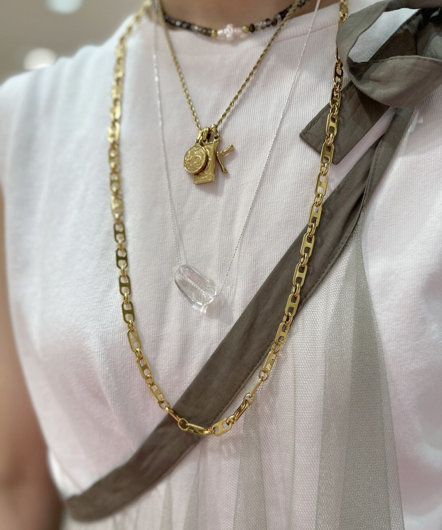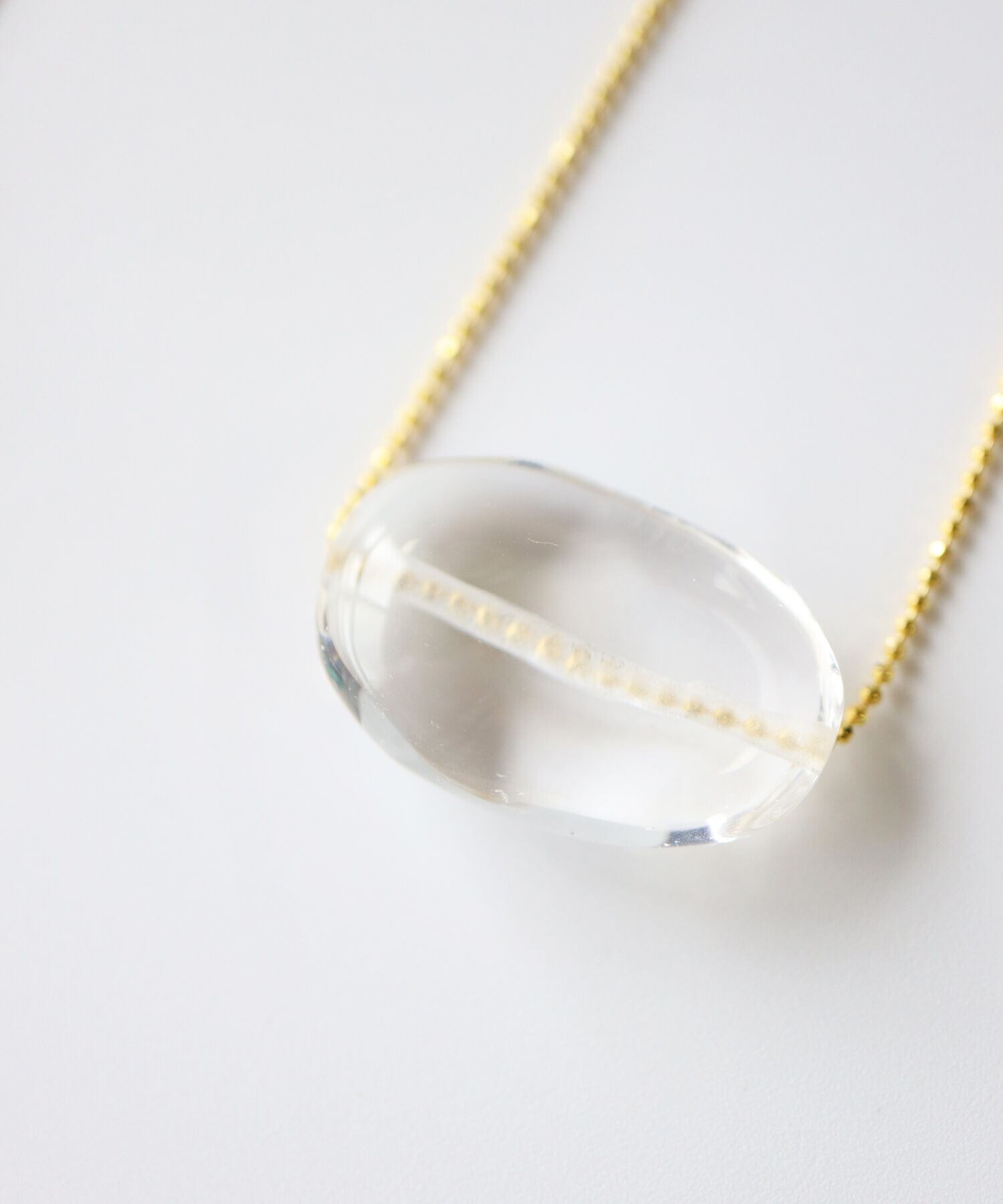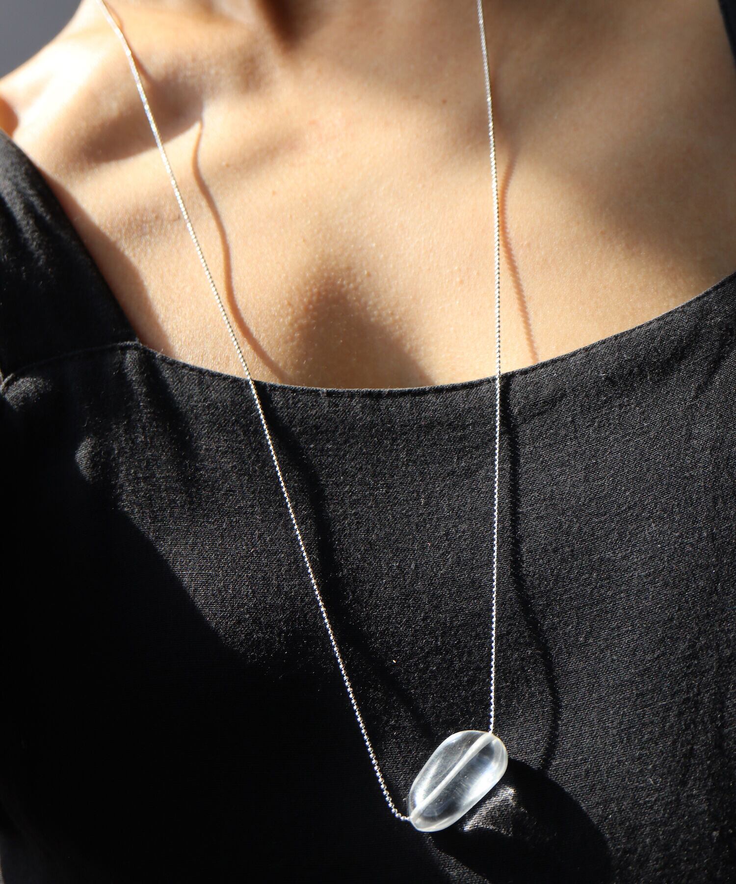 光を美しく反射し煌めきを放つクリアクリスタル、その美しさを際立たせるよう特別に作られた TUWAKRIMオリジナルのチェーン。チェーンのキラキラした輝き、クリスタルの透明な輝きが相まって、首元に上品で洗練された美しさを演出。一つ一つ異なるクリスタルの輝きは、世界であなただけが身に着けることが出来る特別なアクセサリー。
