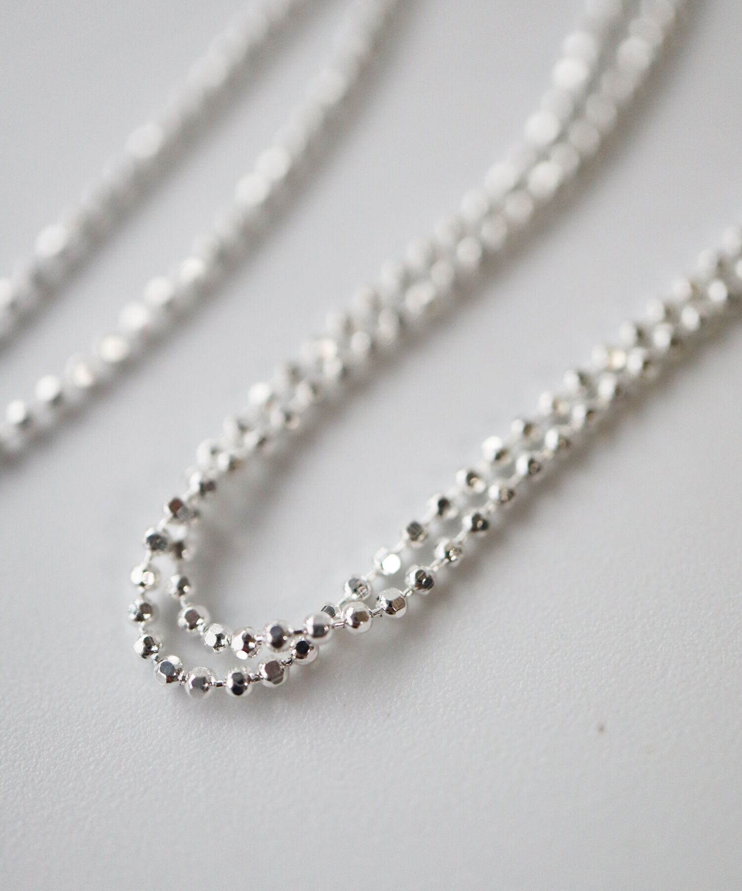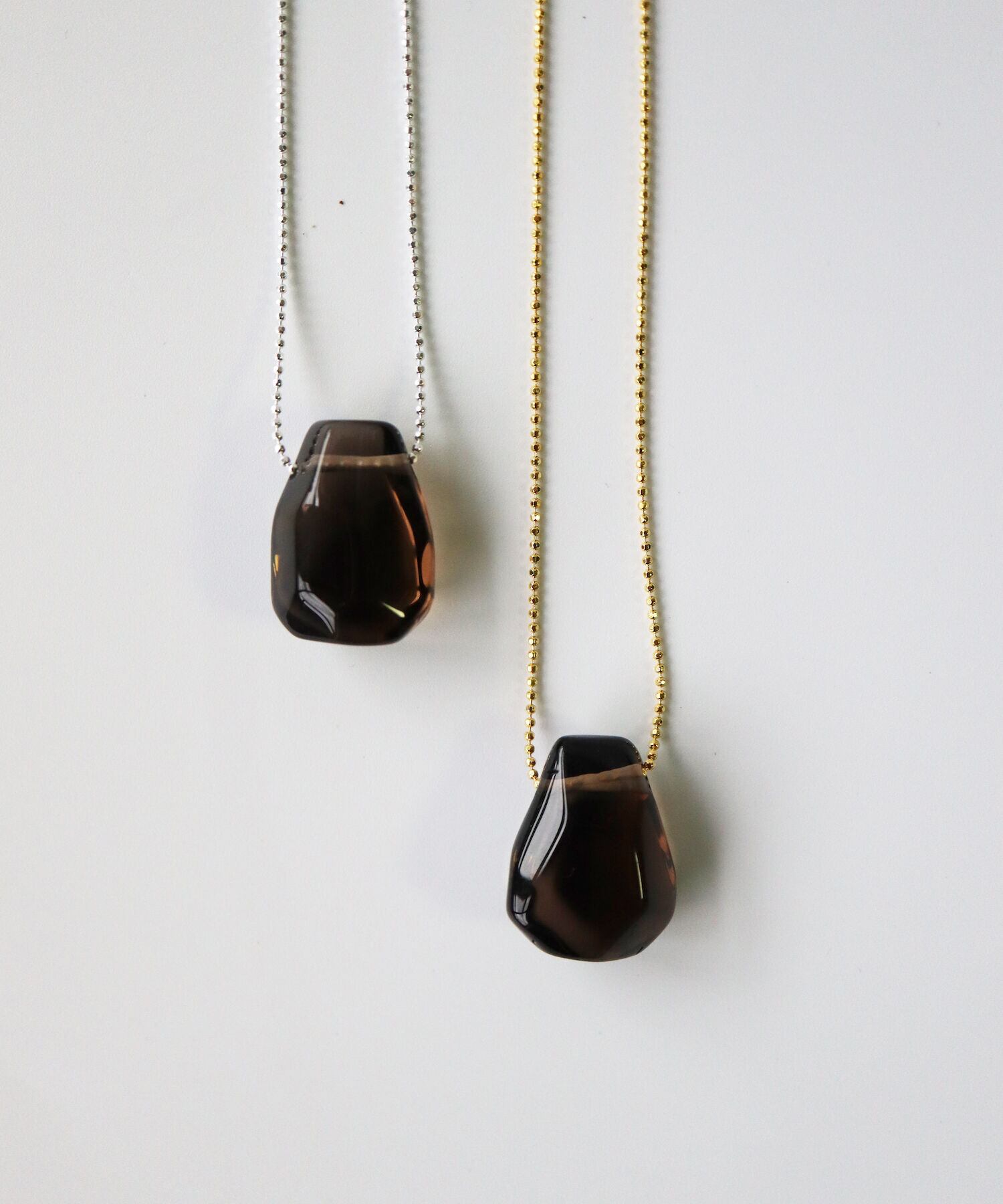 ボールチェーンにカットを施したTUWAKRIMオリジナルのチェーンが、繊細にキラキラ光り輝き、スモーキークオーツの深い色合いと神秘的な美しさを際立たせるネックレス。
