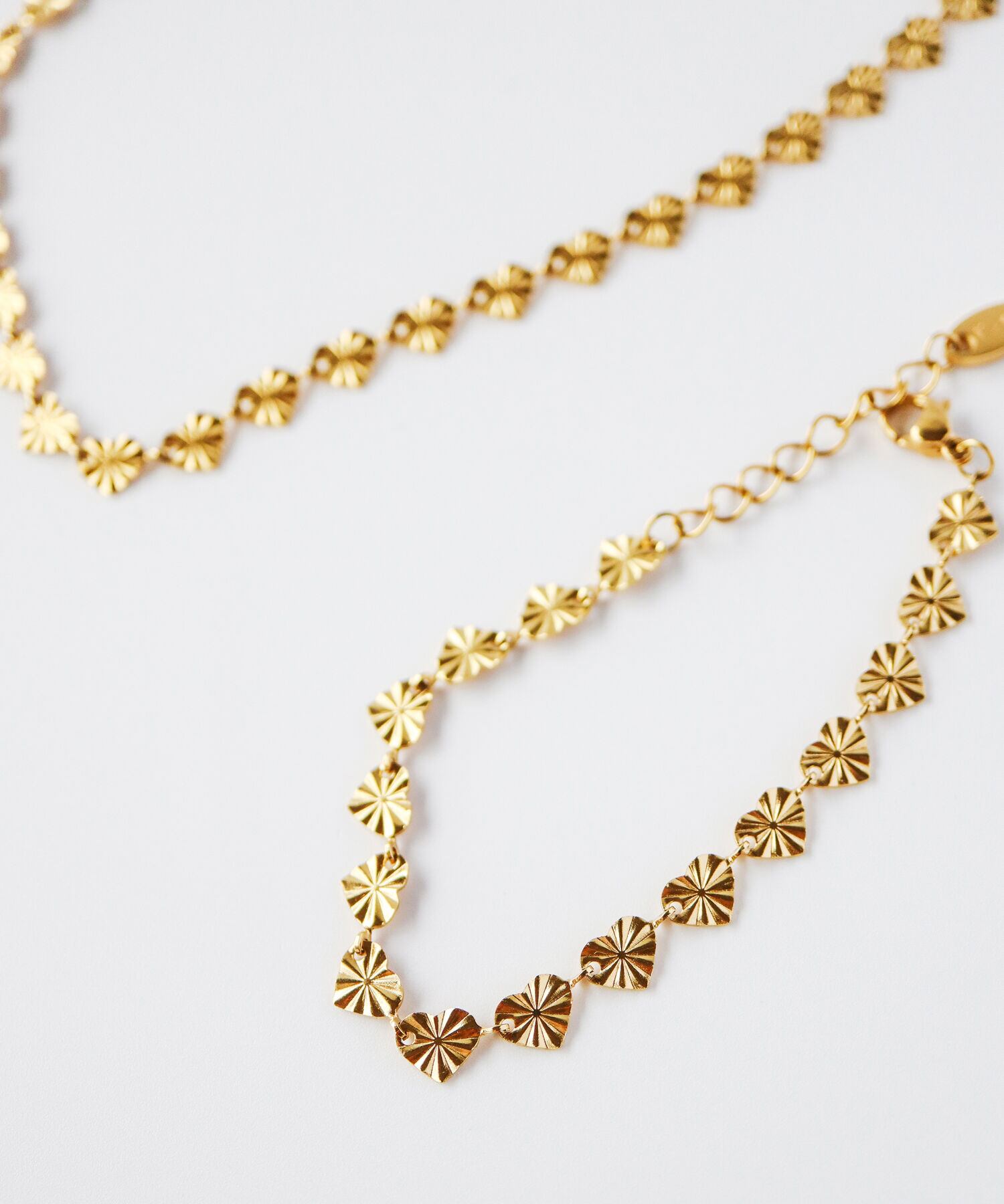ハートのカットが繊細な魅力を放つチェーン。