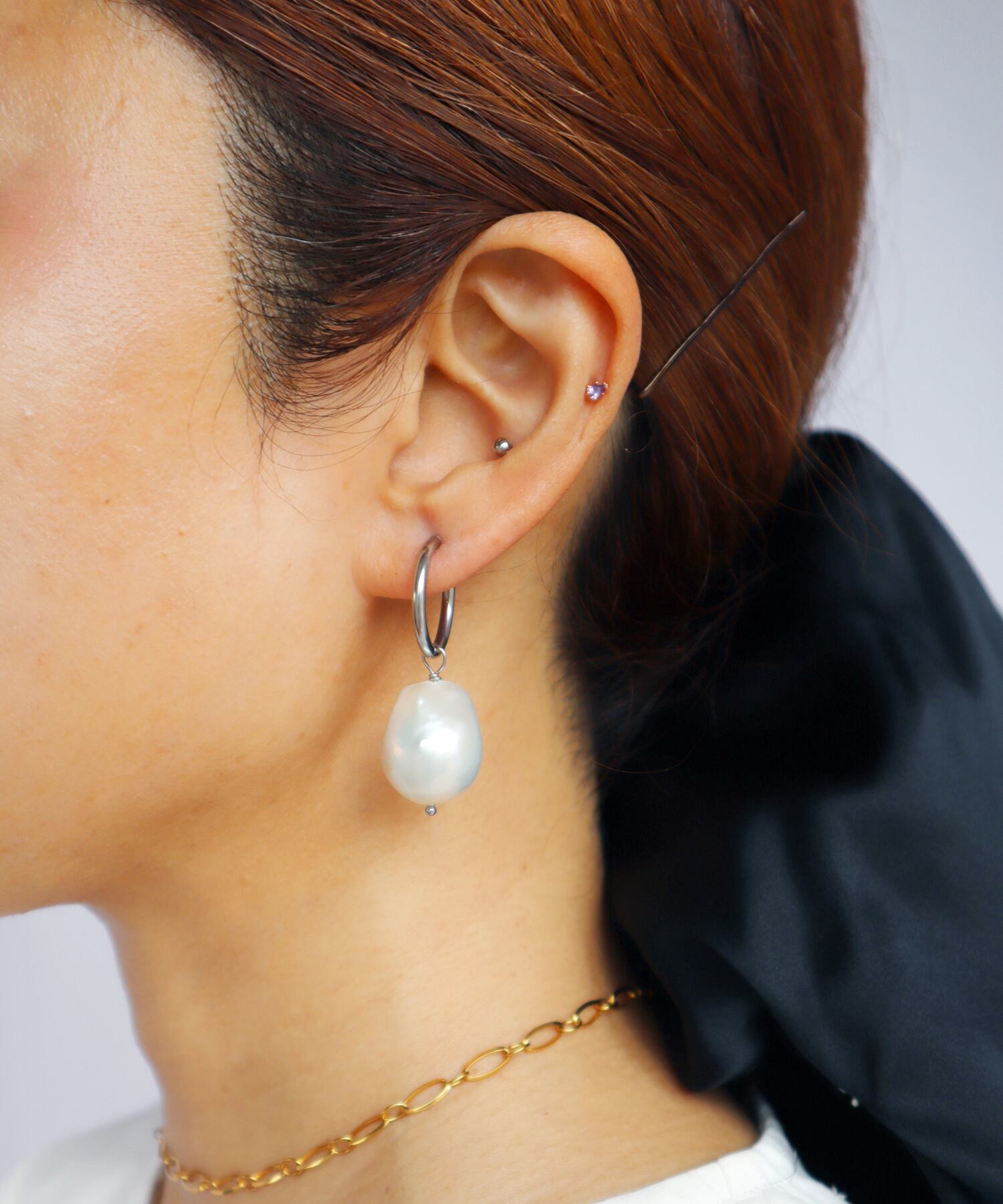 大きなバロックパールがインパクトを放つチャームイヤカフ