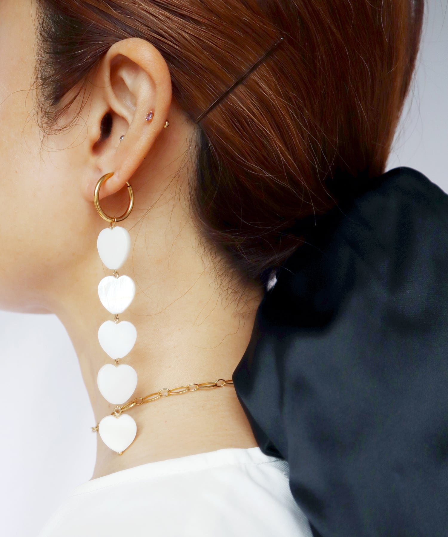 ハート型の天然シェルが愛らしいチャームイヤカフ