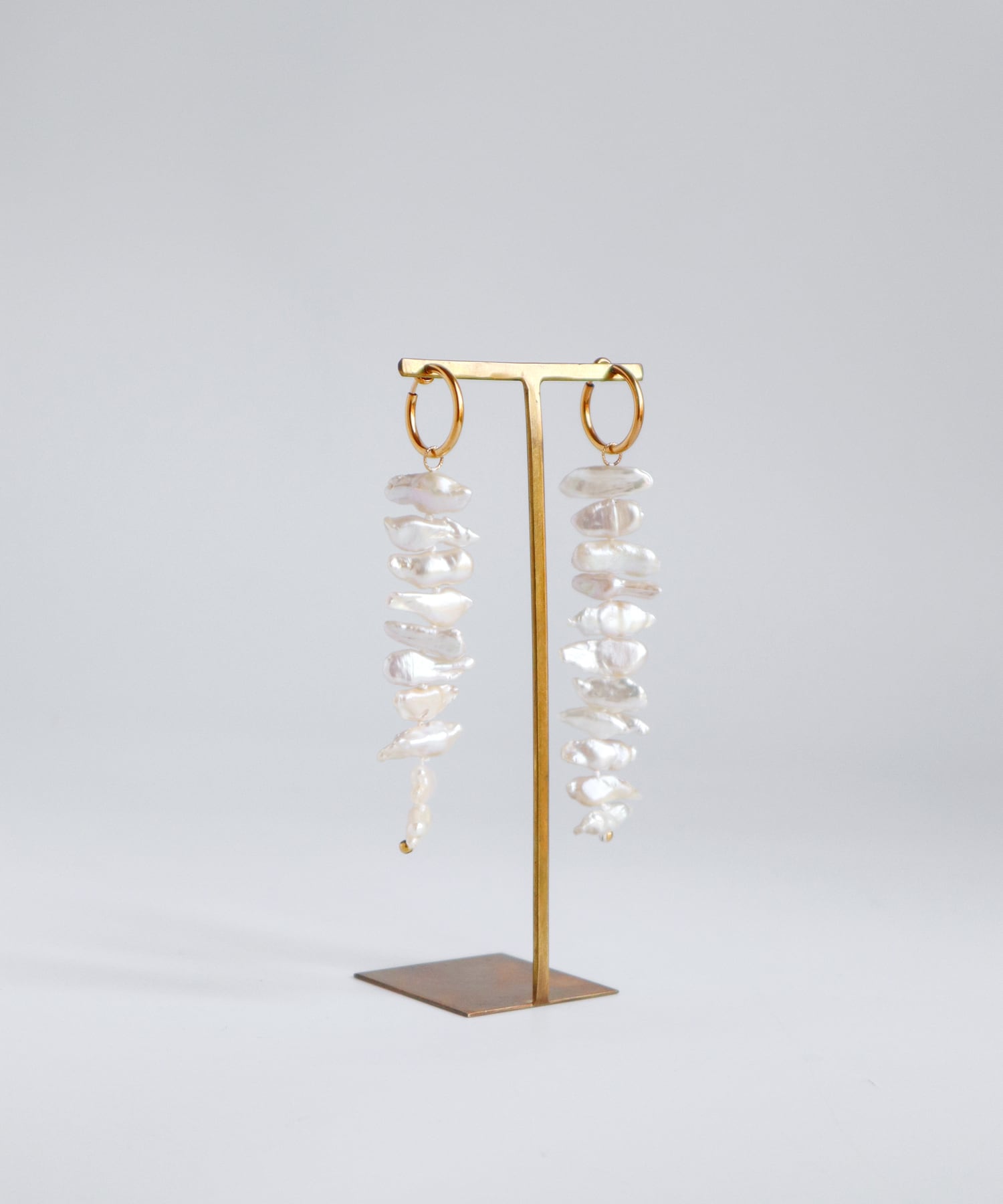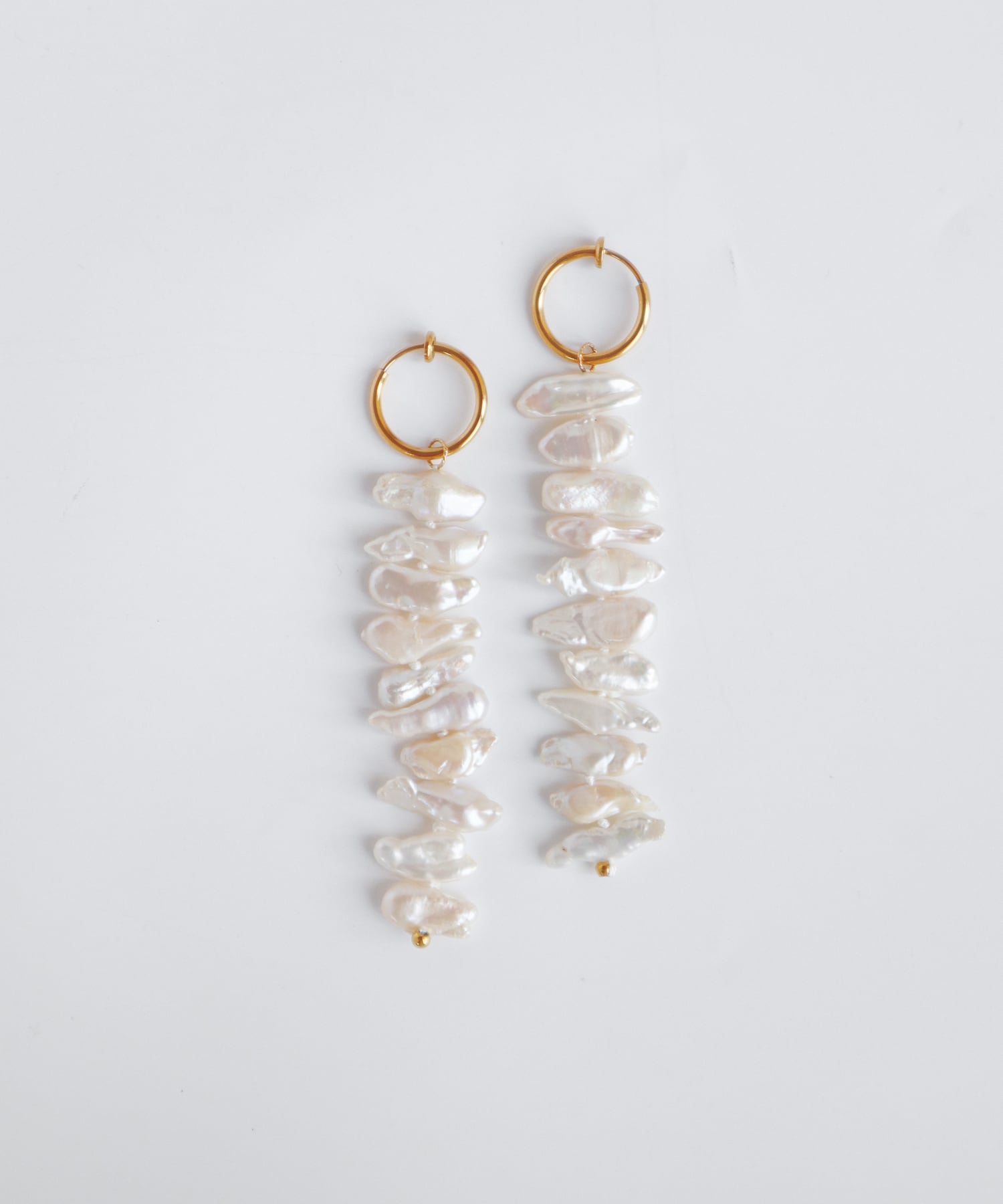 独特な形状のフラットパールが魅力を放つイヤカフ。