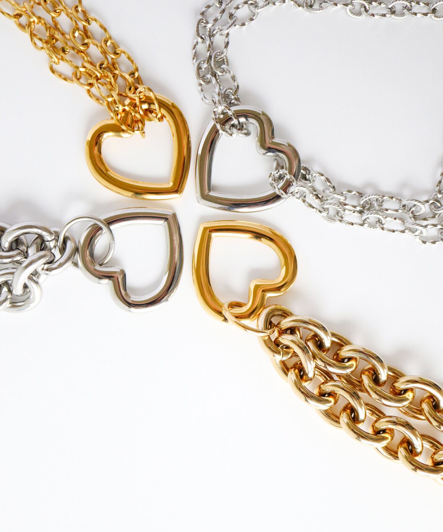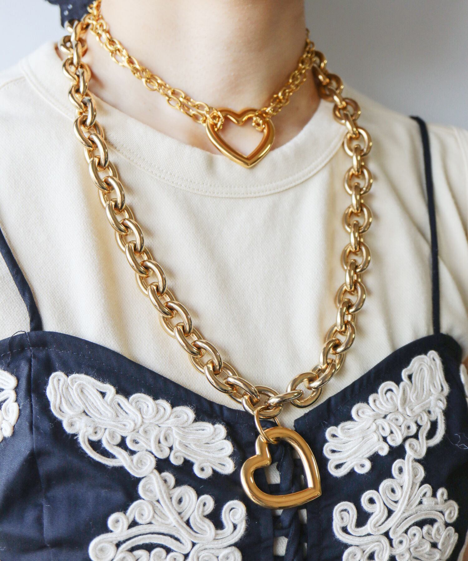 可愛いトップにあえてボリューム感のあるチェーンをセットした絶妙なバランスが◎