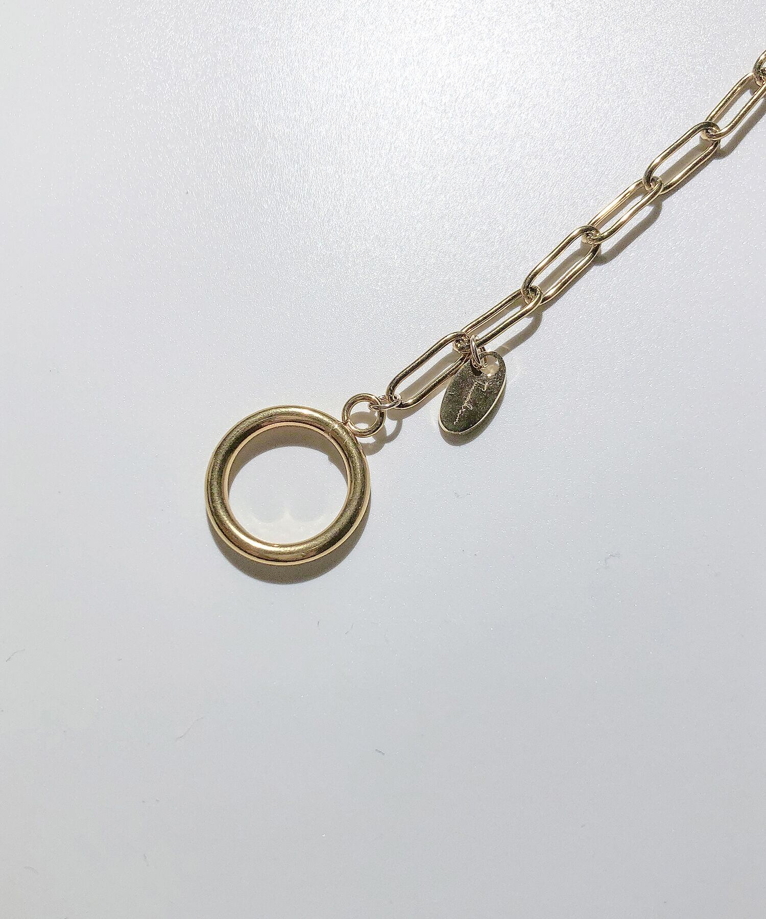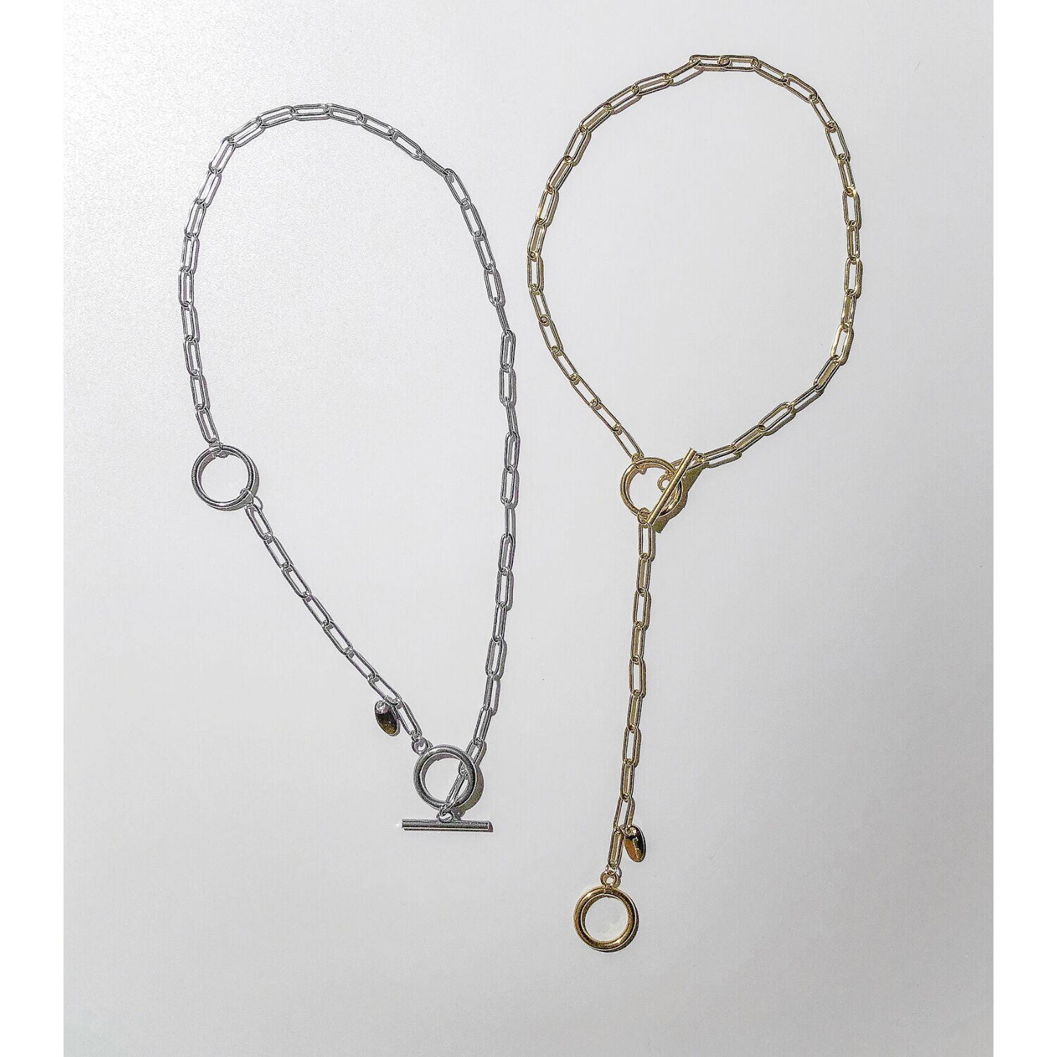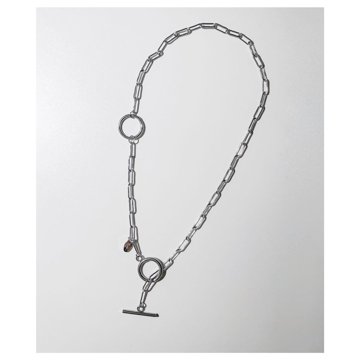 太すぎず細すぎず、絶妙なボリューム感のシンプルチェーンで幅広いコーデにマッチ。