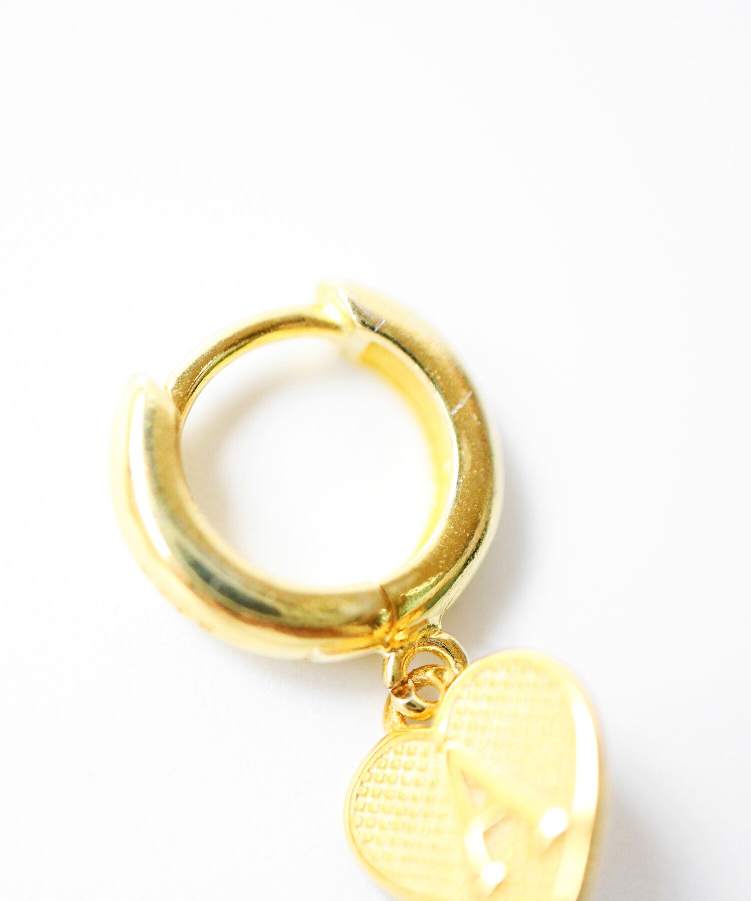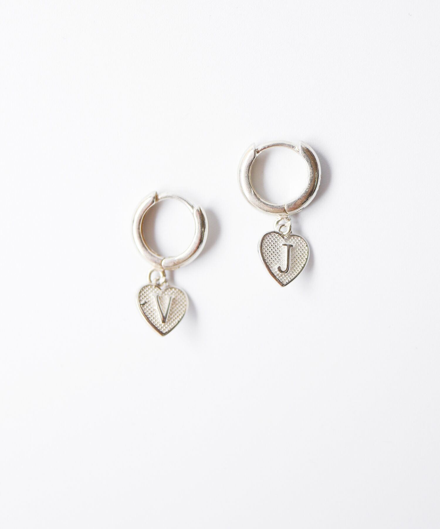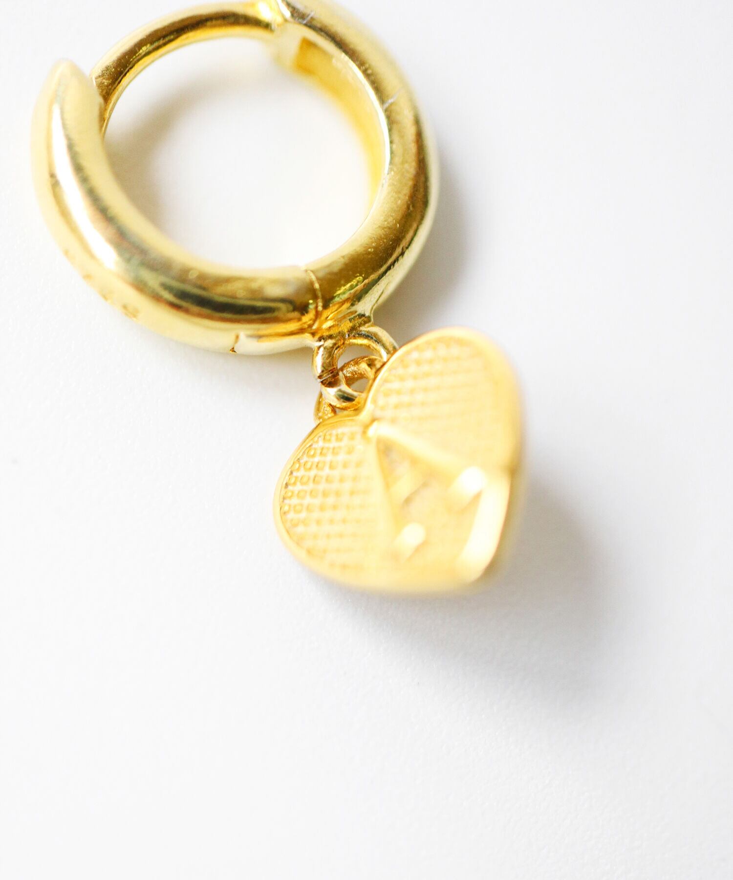 ハートにレタリングを施したチャームがキュートに揺れるアイテム。
