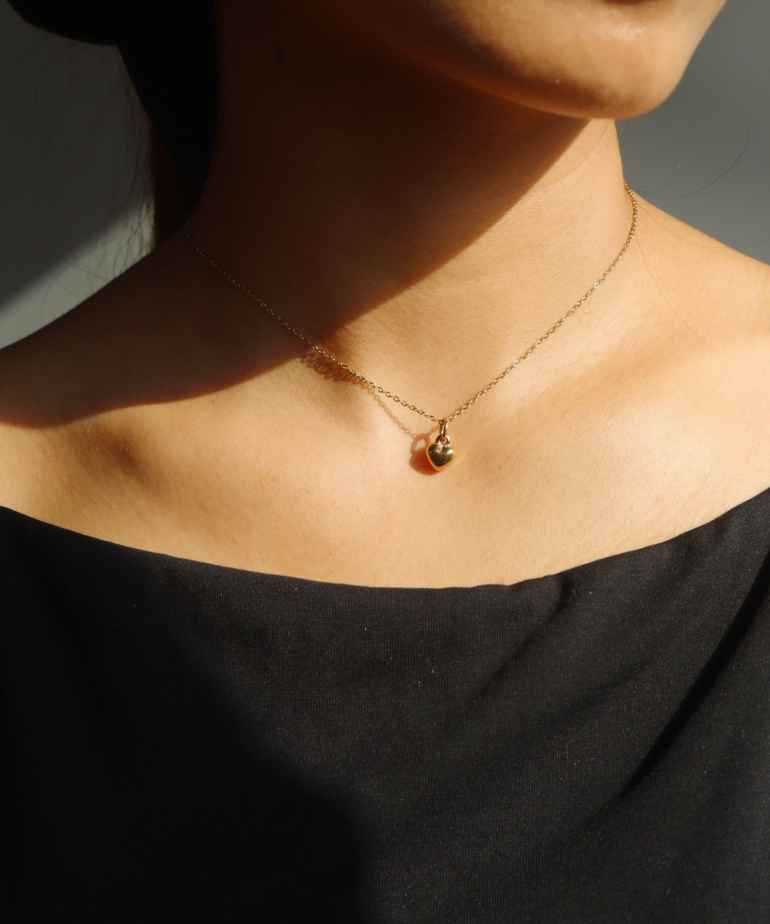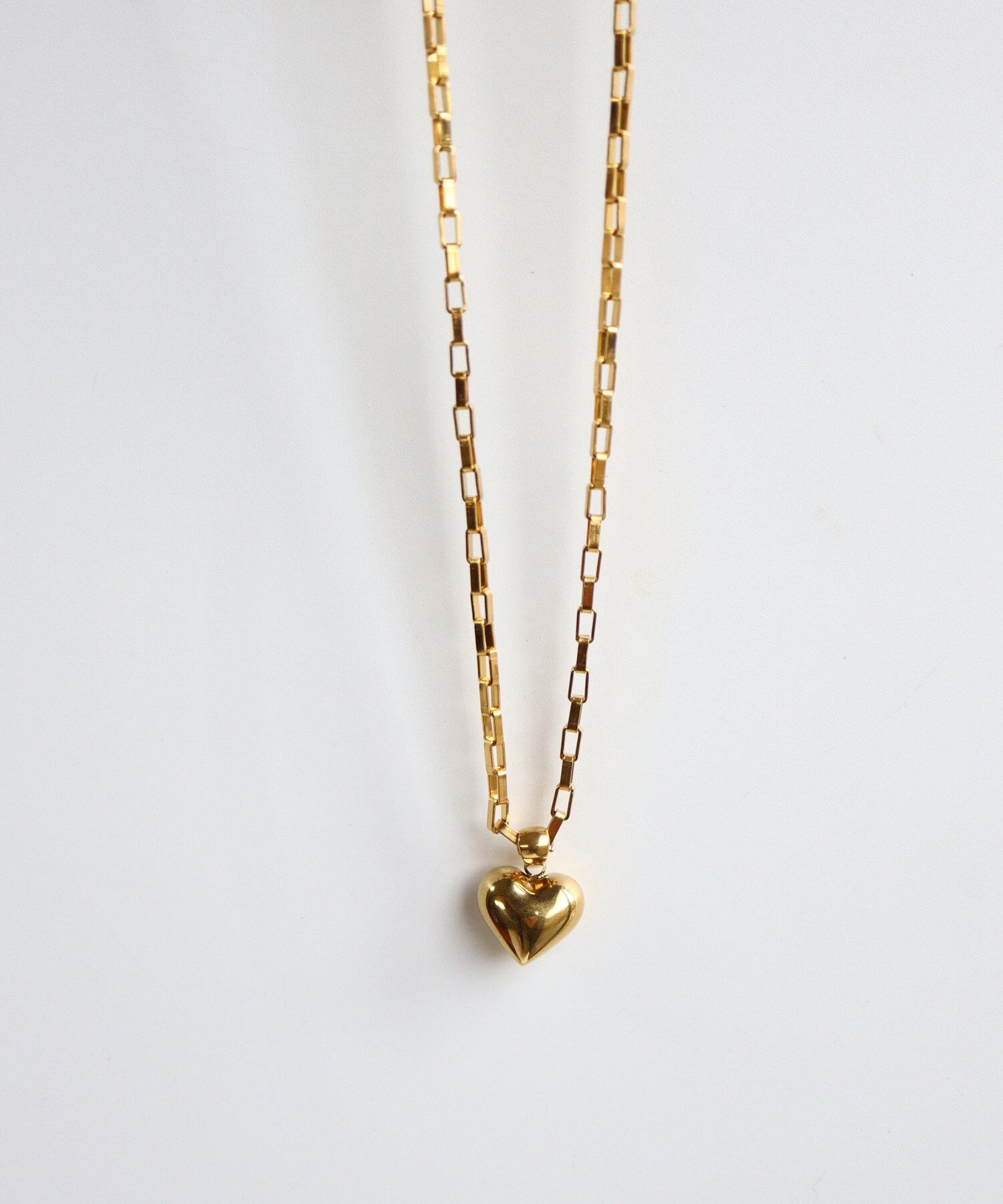ふっくらとしたハートチャームがキュートなネックレス。
