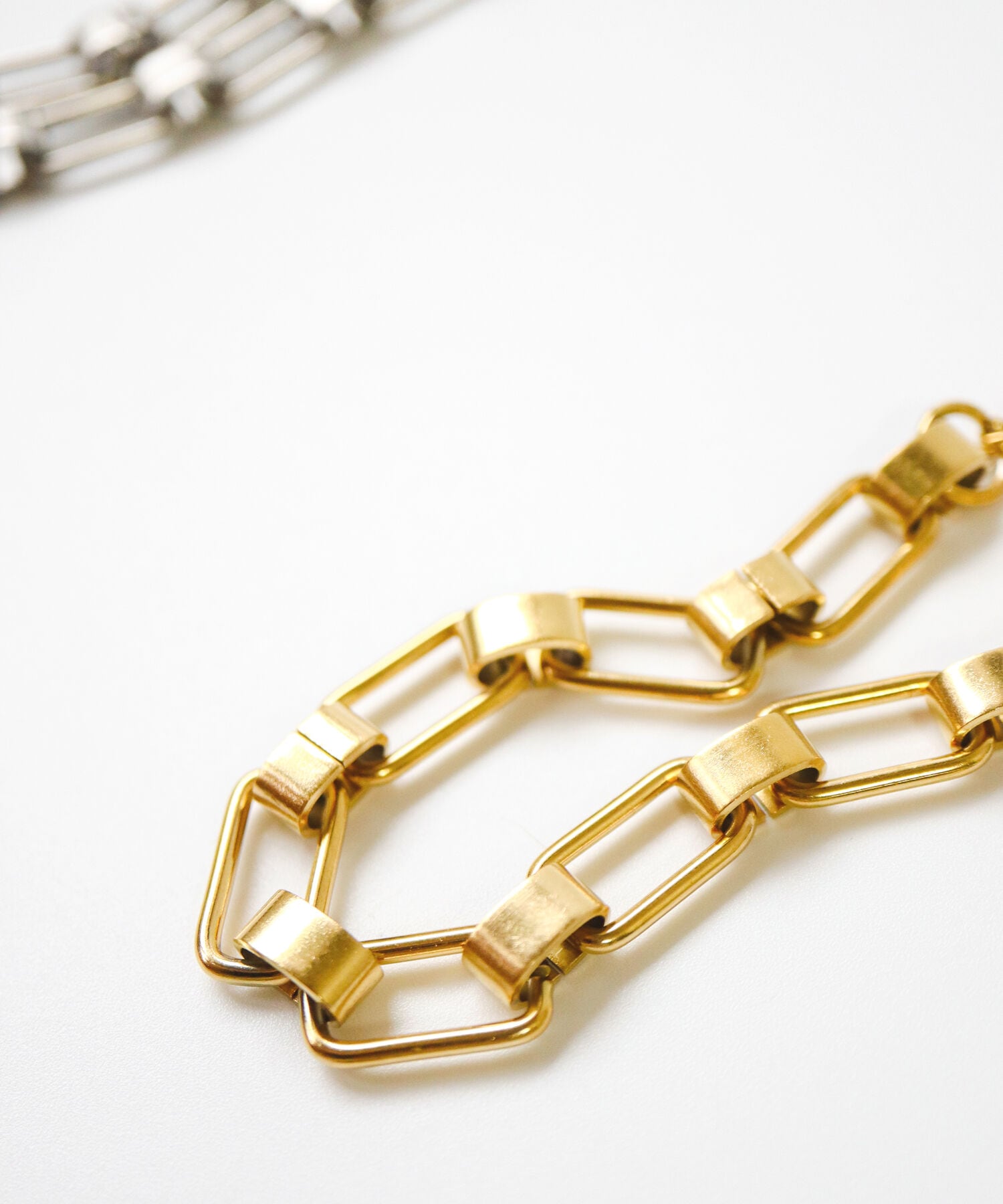 スクエアフォルムのチェーンがシャープな印象のブレスレット。