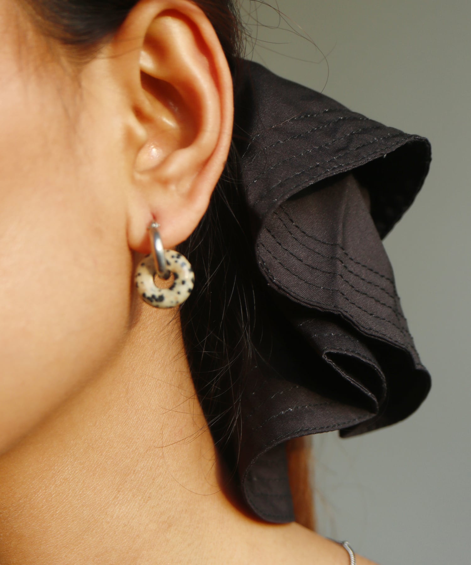 取り外して使えるシルバーフープは1点づつハンドクラフトにより仕上げた一品。