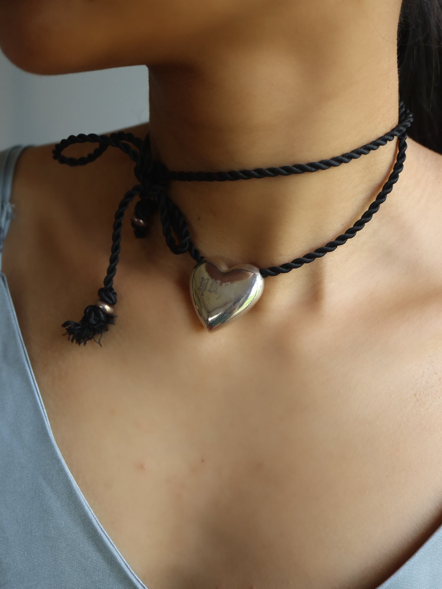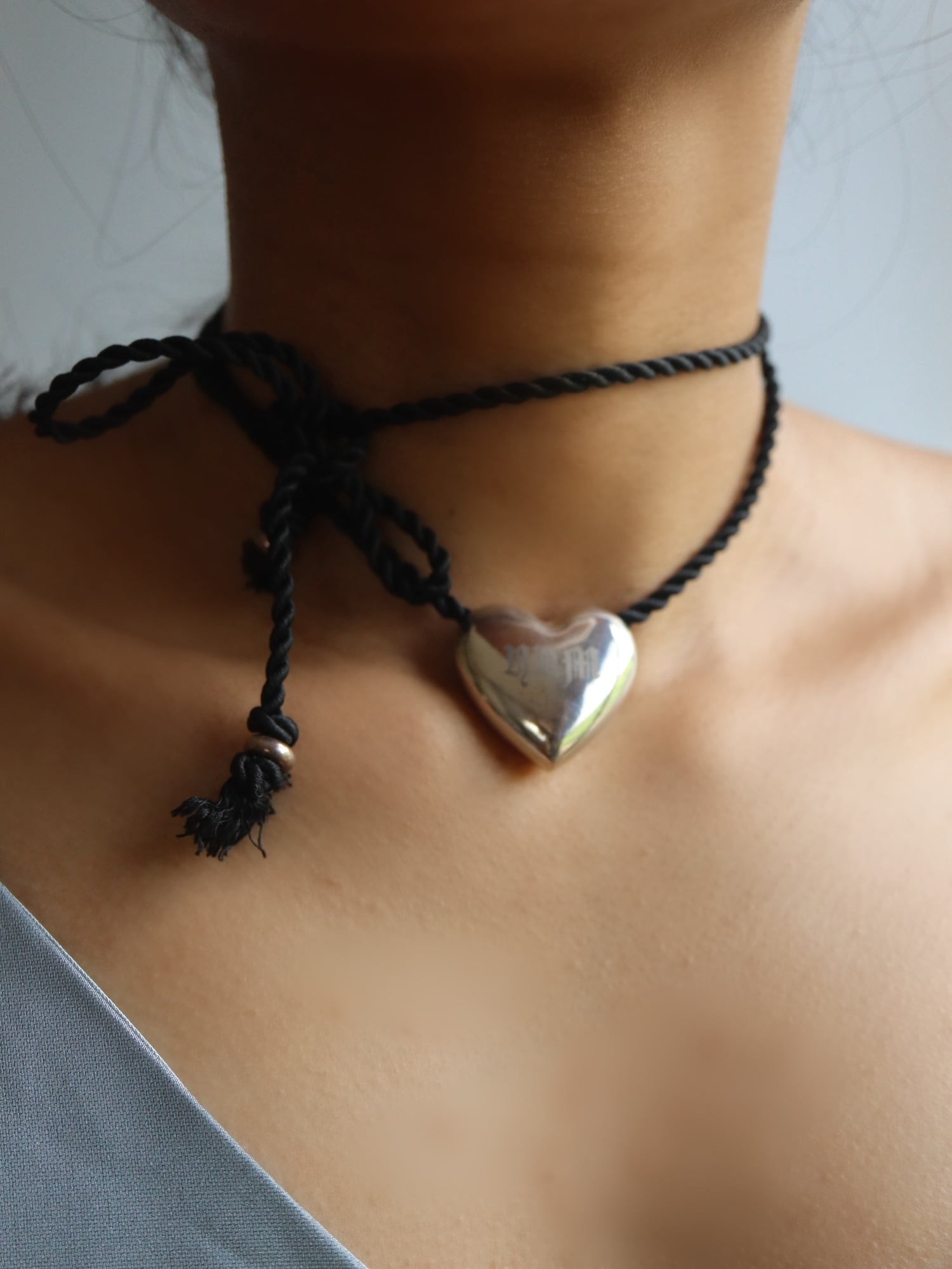 シルクコードをタイトに結んでチョーカーに、長めに垂らしてネックレスにと使えるのも嬉しいポイント。