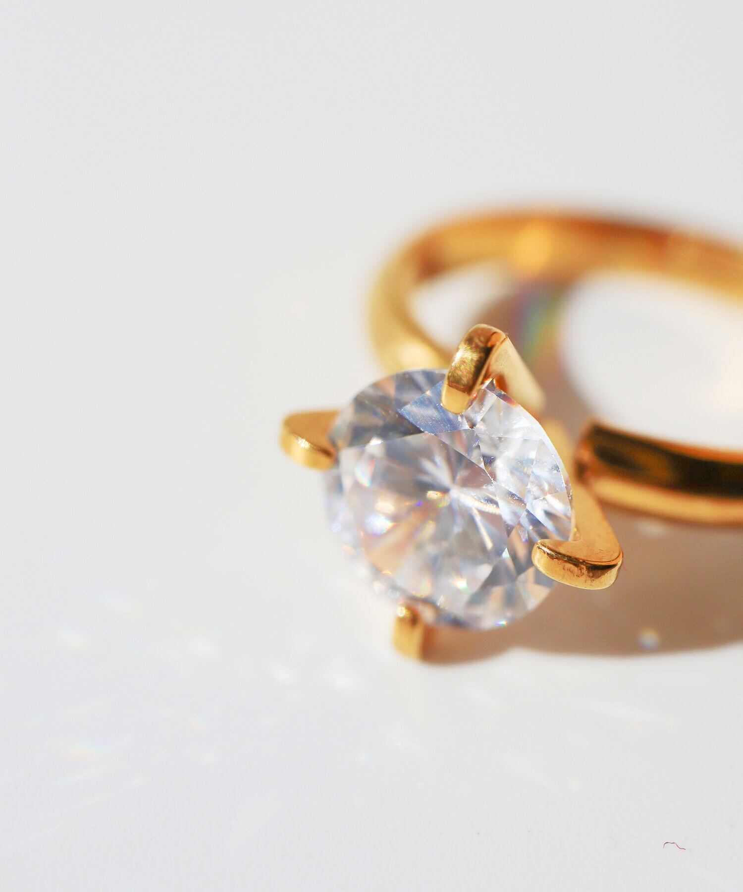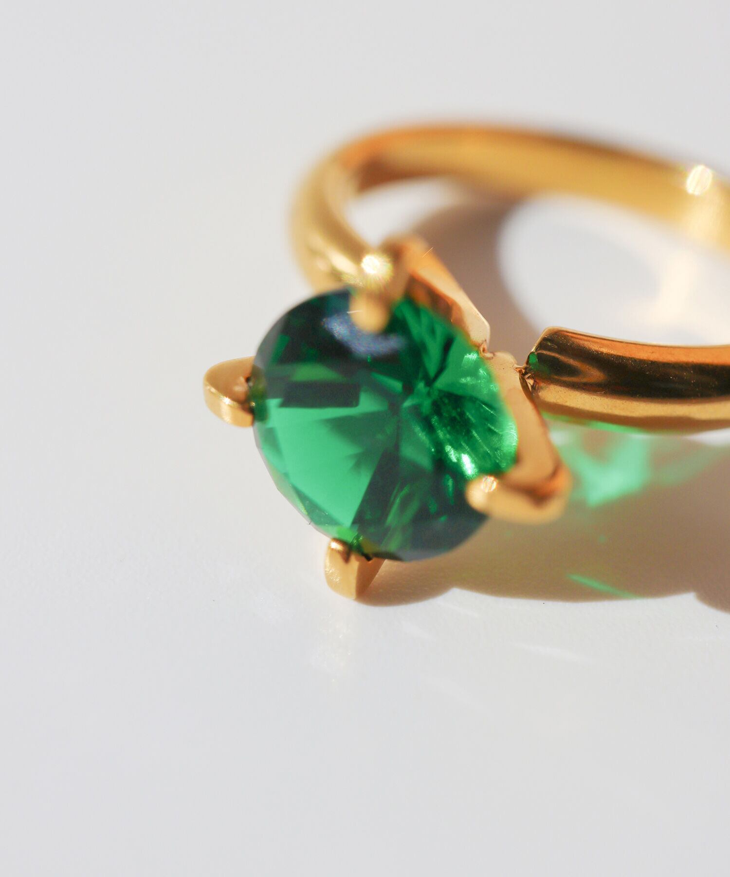 ジルコニアのカラーを堪能できるタテヅメセッティングは見かけより使いやすく、更にレイヤードにもマッチ。