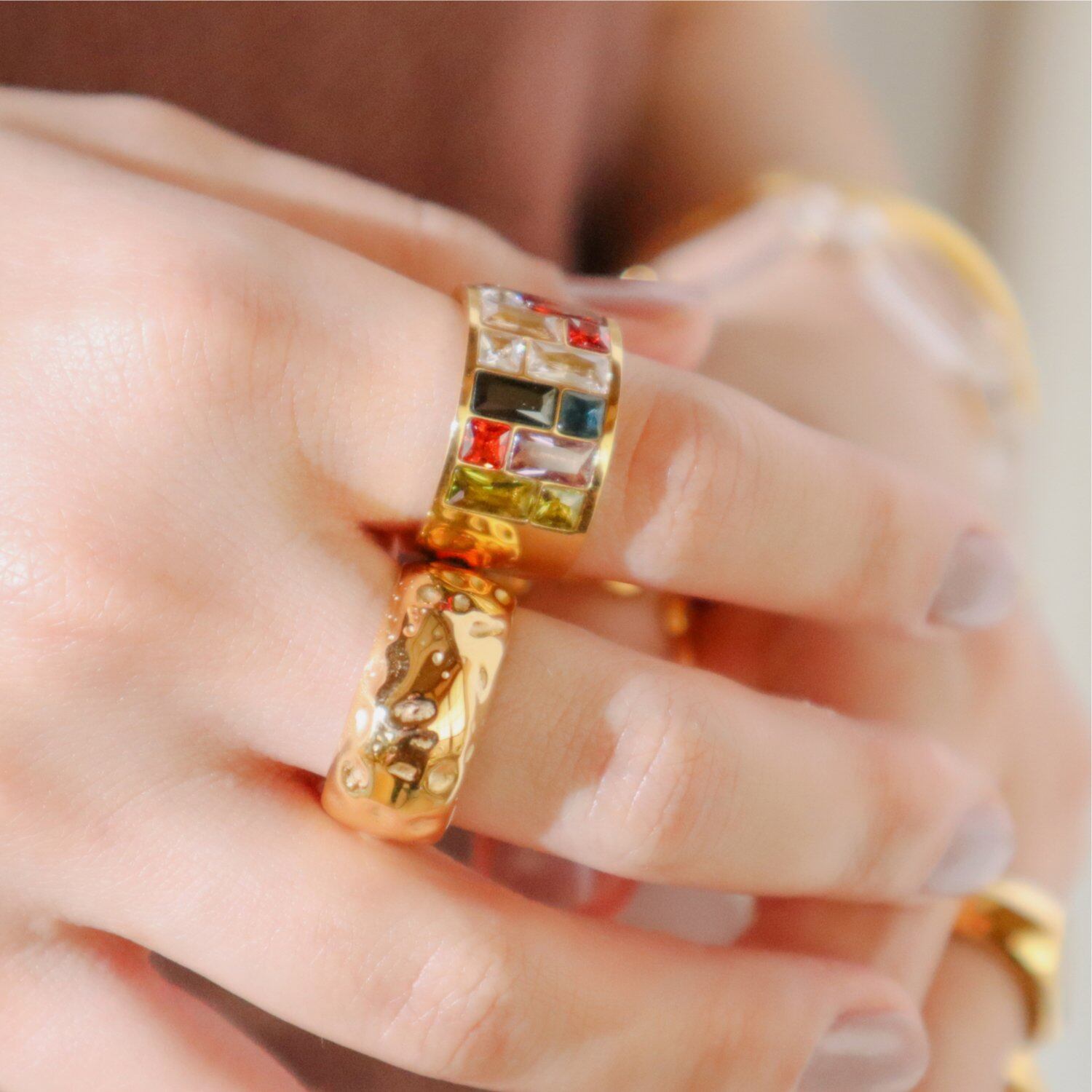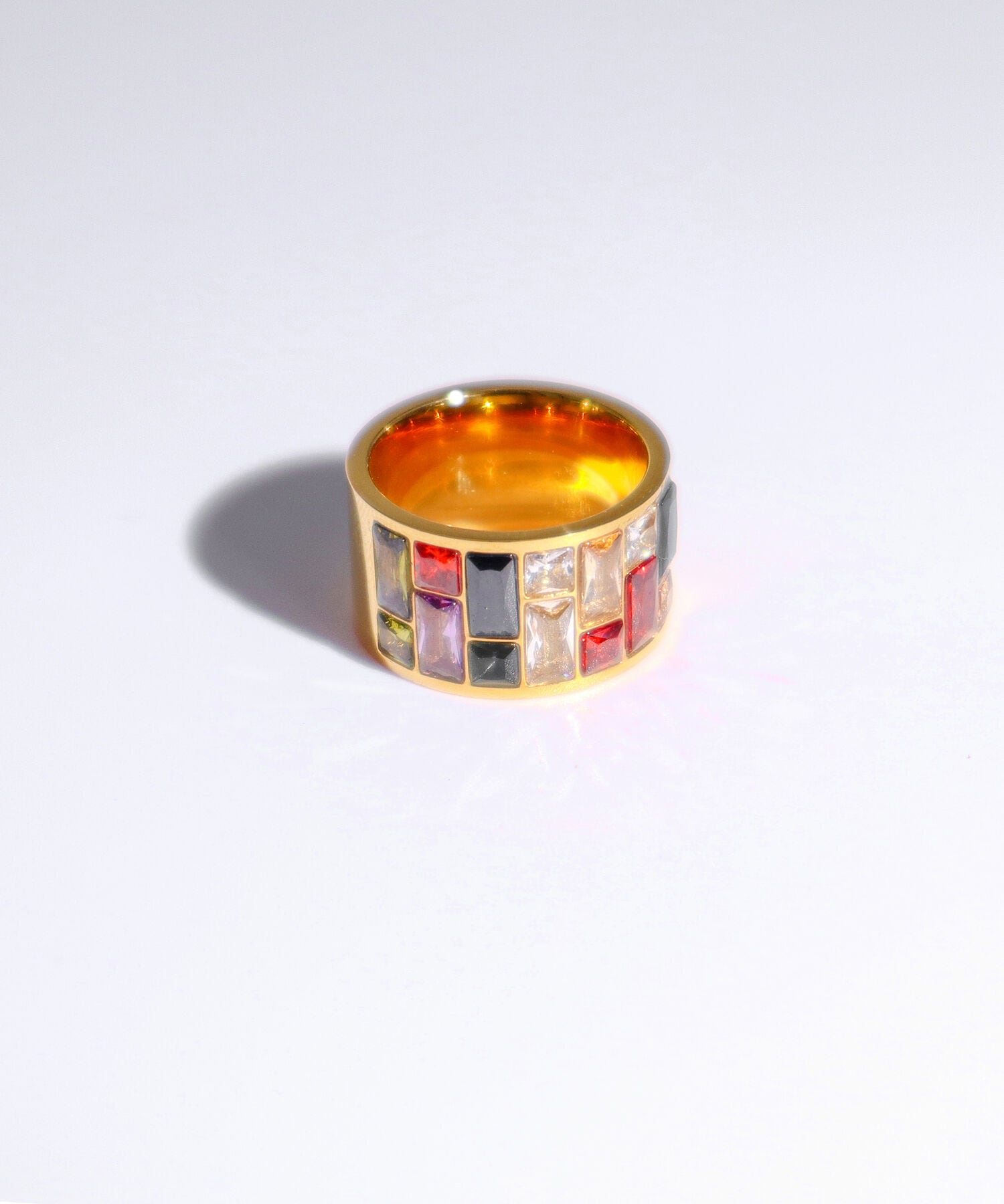 スクエアカットのストーンは、ヴィンテージライクながら洗練されたシャープな印象も。