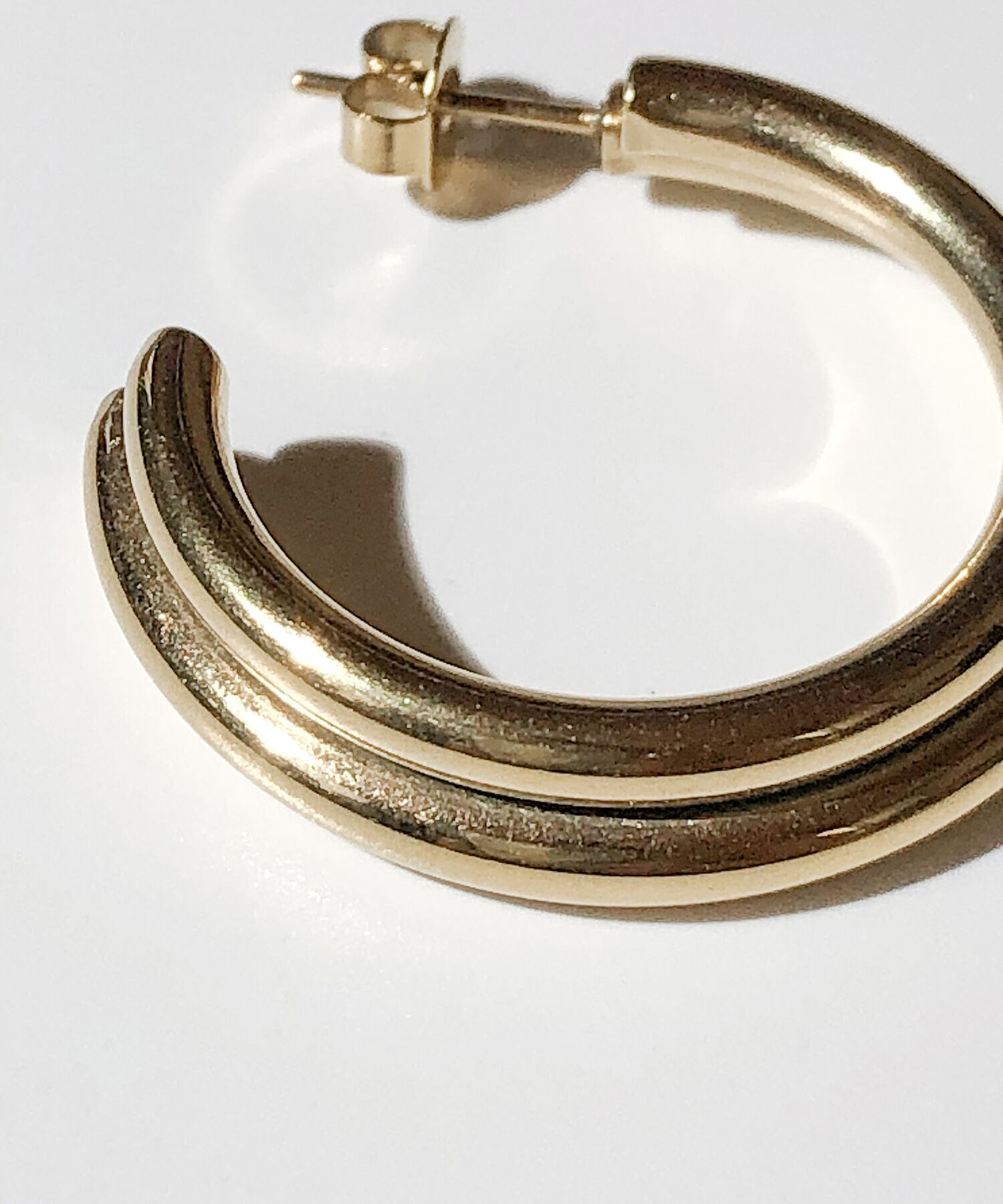 シャープな印象のフープピアス。
