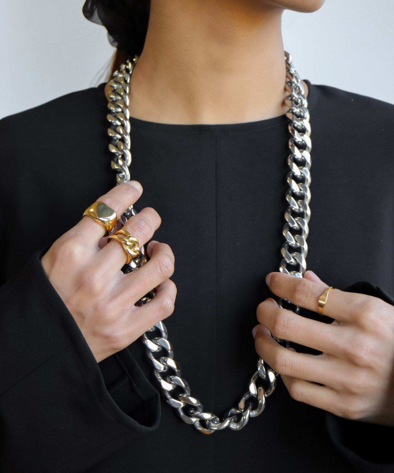 インパクトのあるチェーンモチーフリング。