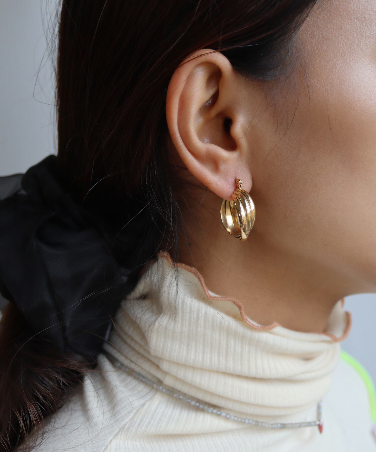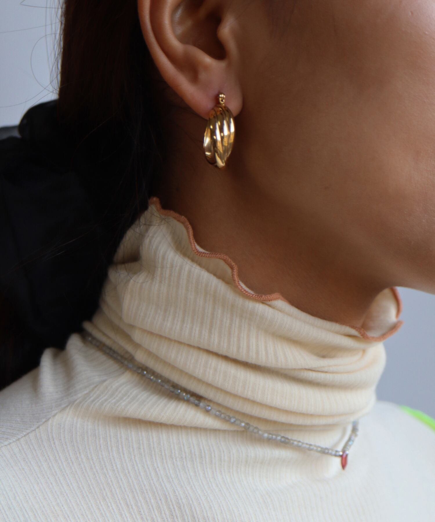 アンティーク調でキュートなフープピアス。