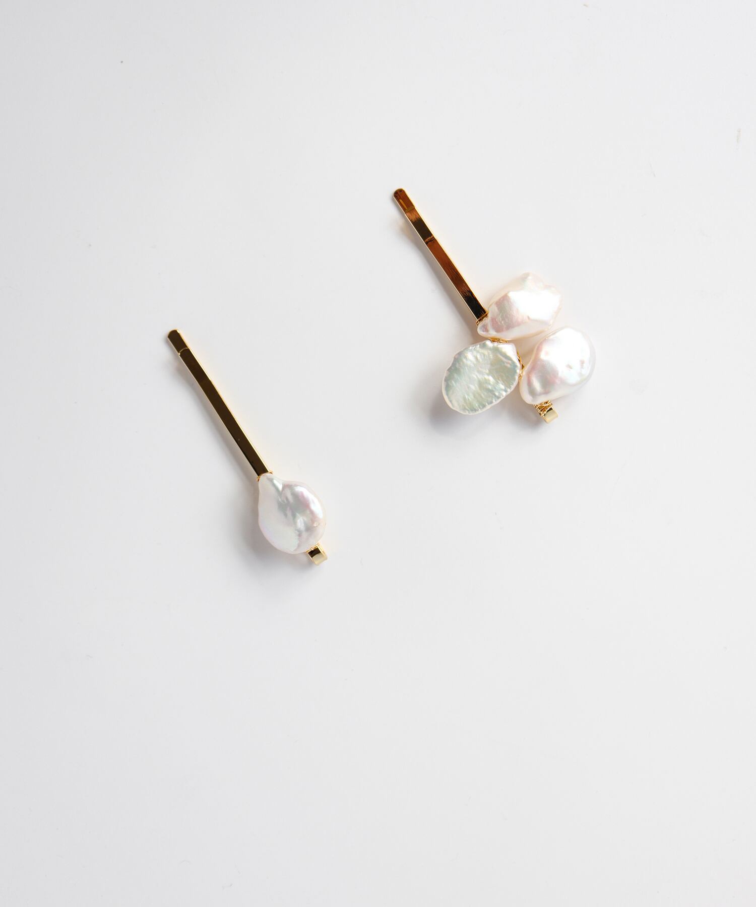 大粒のバロックパールを贅沢に使用したヘアピン。
