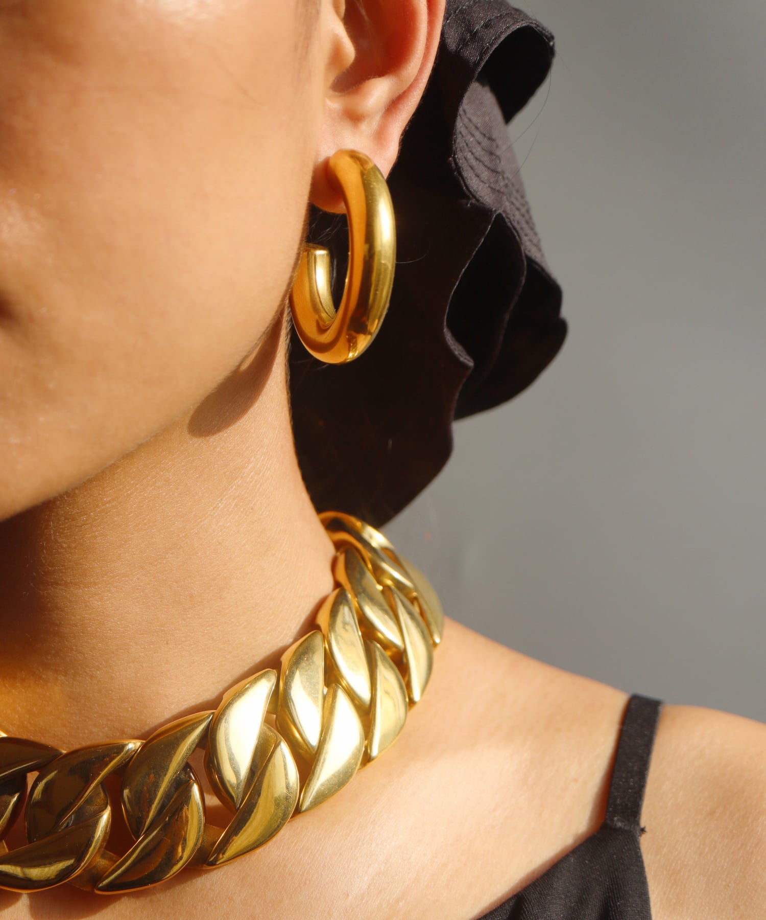 視線を独り占め!耳元で輝くラージサイズのフープピアス。