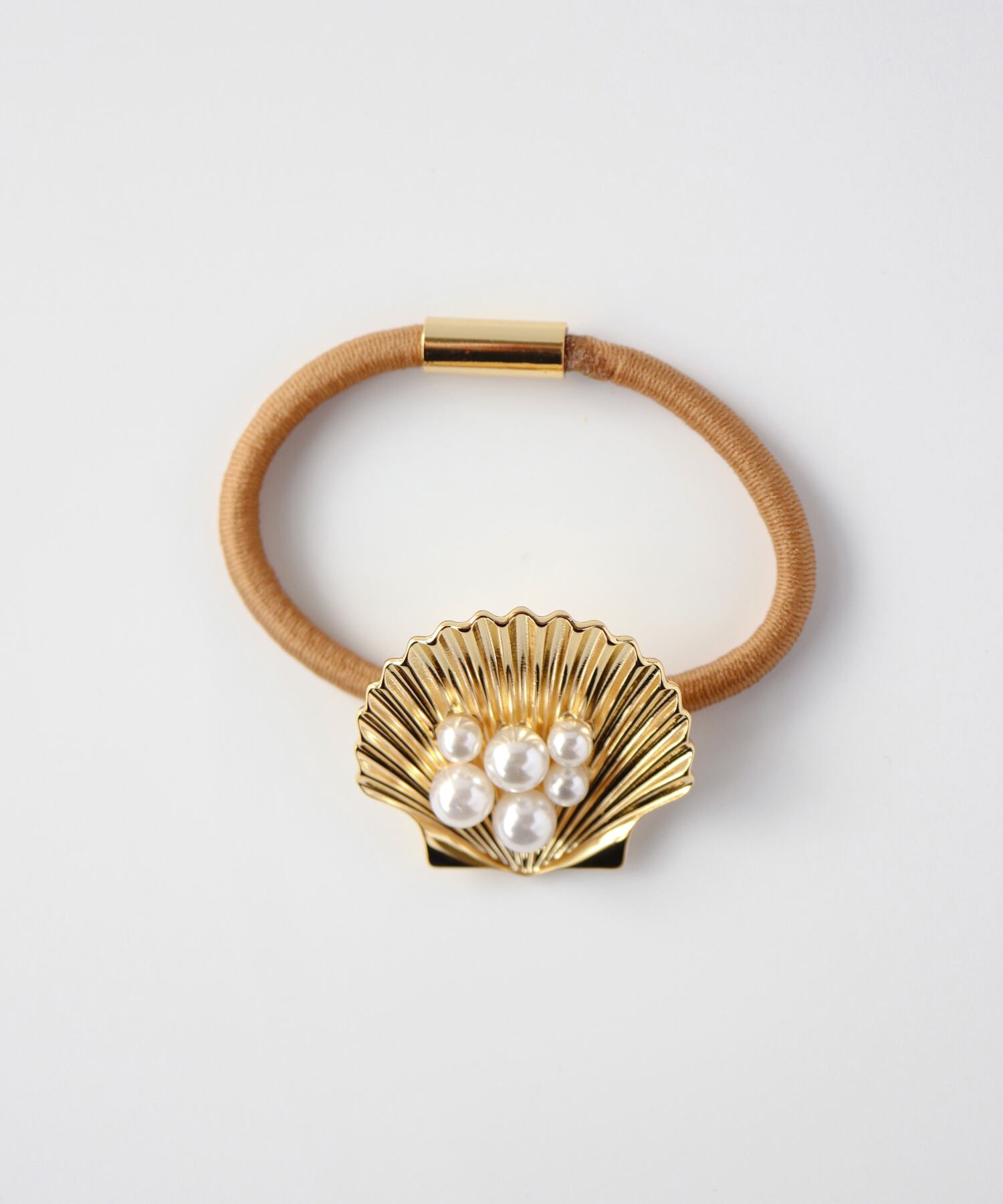 小さなシェルとパールが視線を集めるヘアタイ。