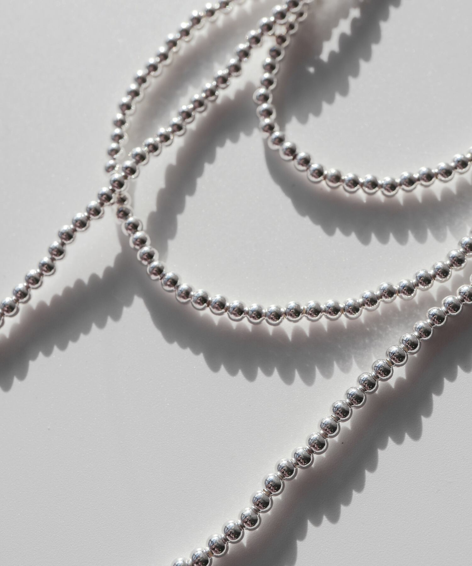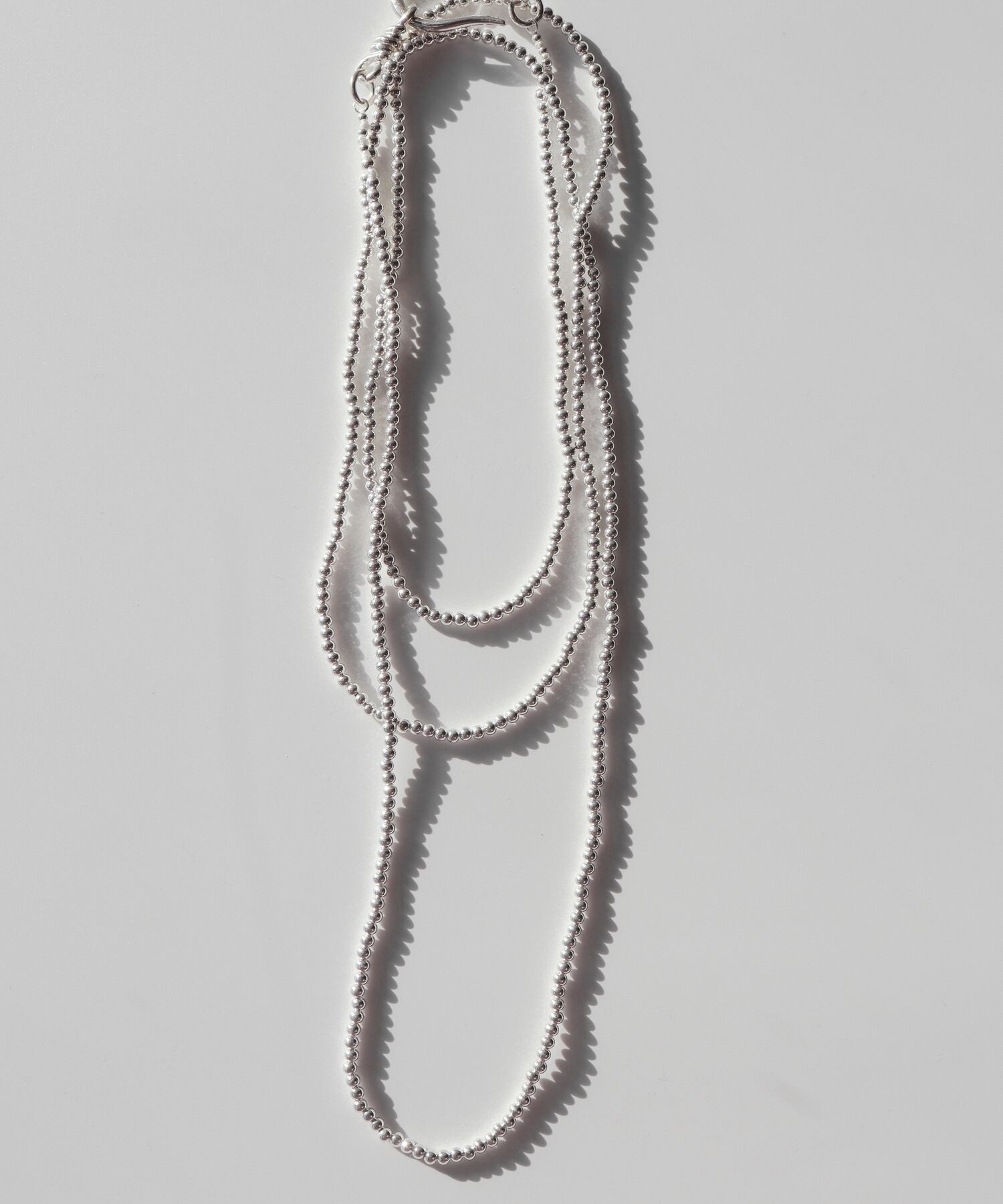 ピュアシルバーのビーズが繊細に連なったロングネックレス。