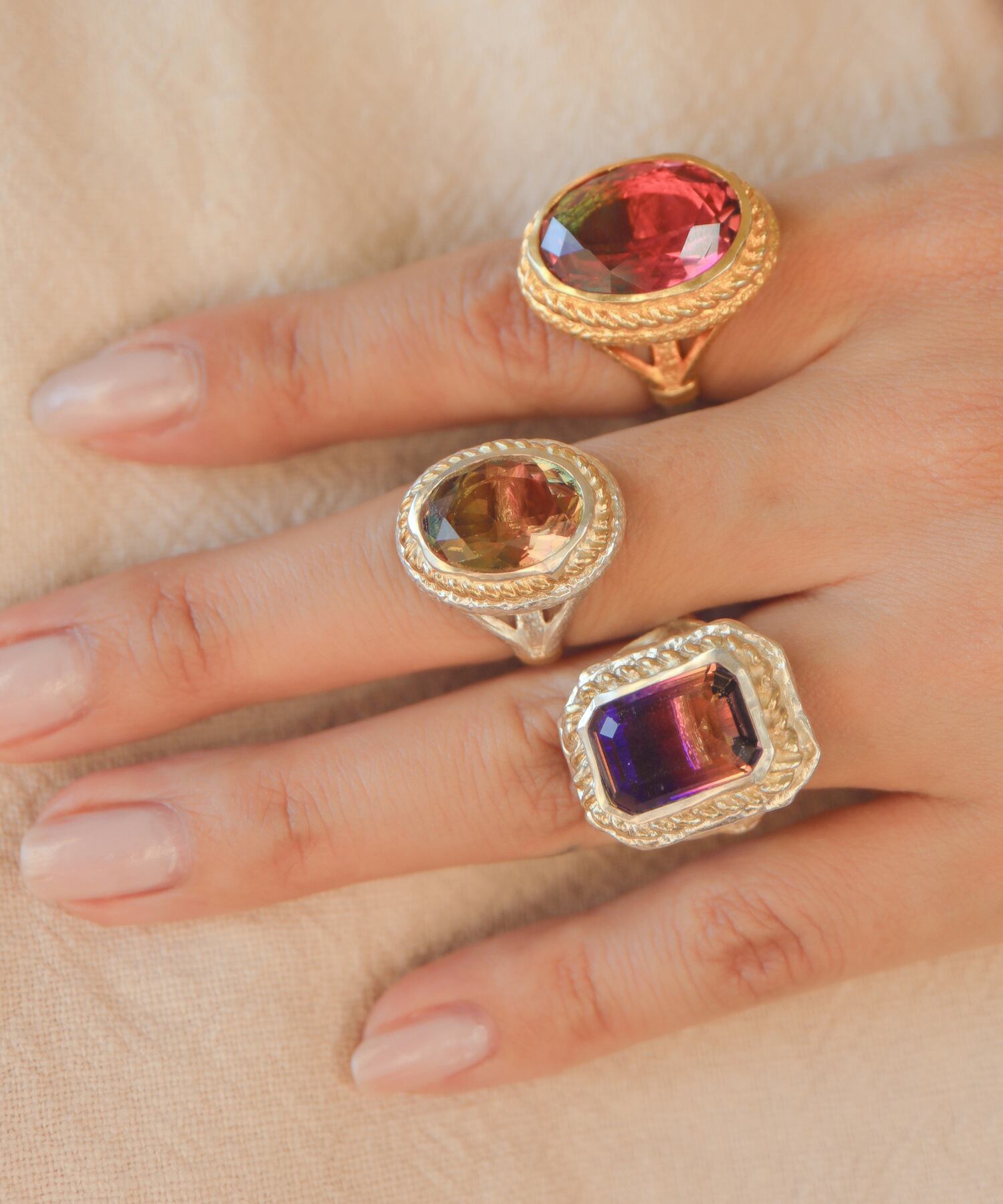 希少なウォーターメロントルマリンのグラデーションを見事に表現したリング。