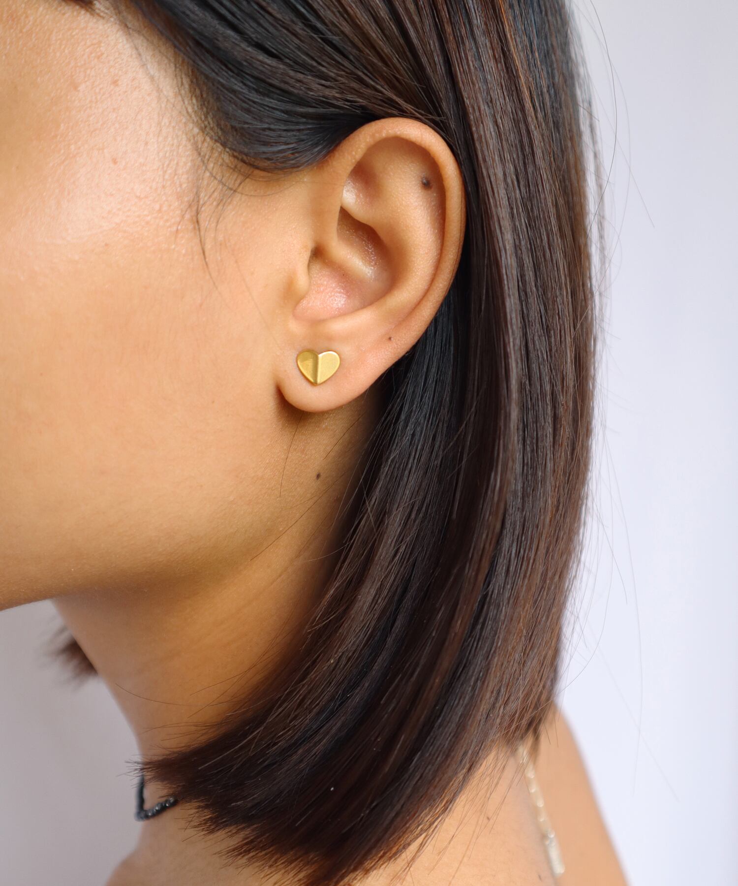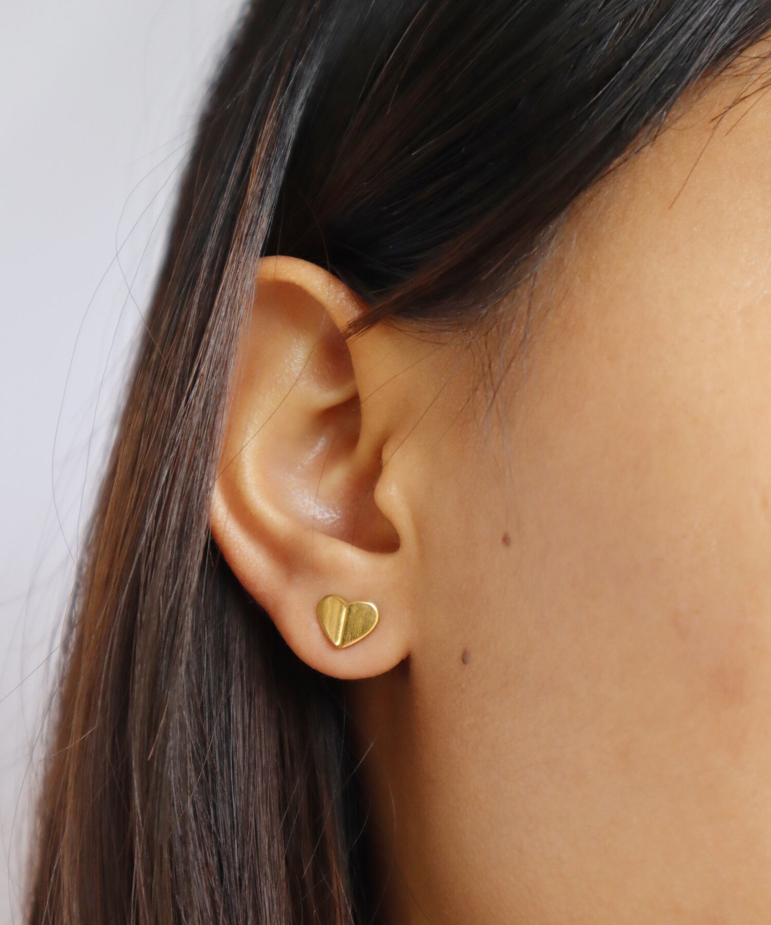 シャープなフォルムで、甘さを抑えた大人のハートピアス。